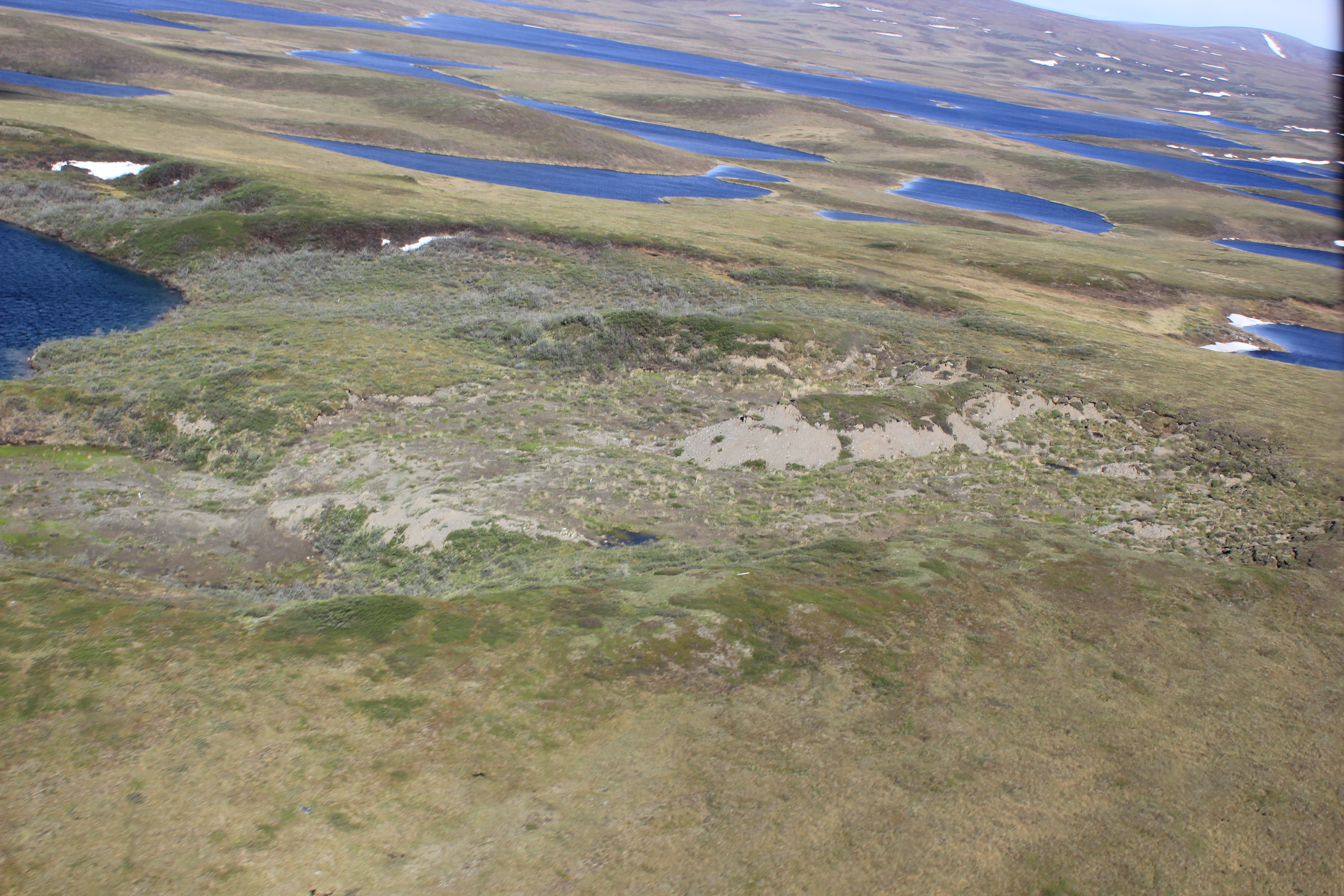 On this sunny day, many blue lakes are seen on the tundra from the helicopter. Toolik Field Station, Alaska.
