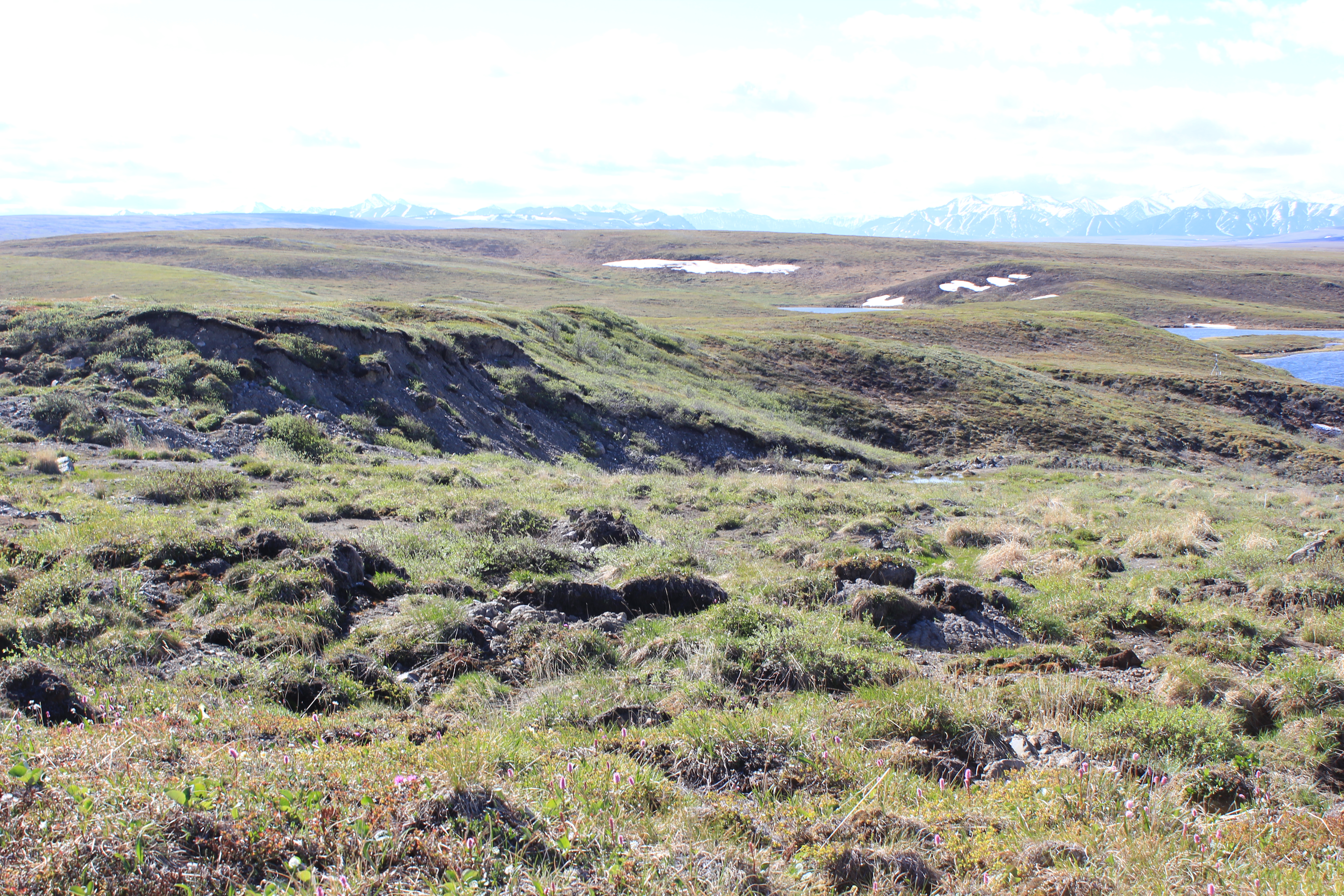 A small thermokarst with the Brooks Range in the background. Toolik Field Station, Alaska.