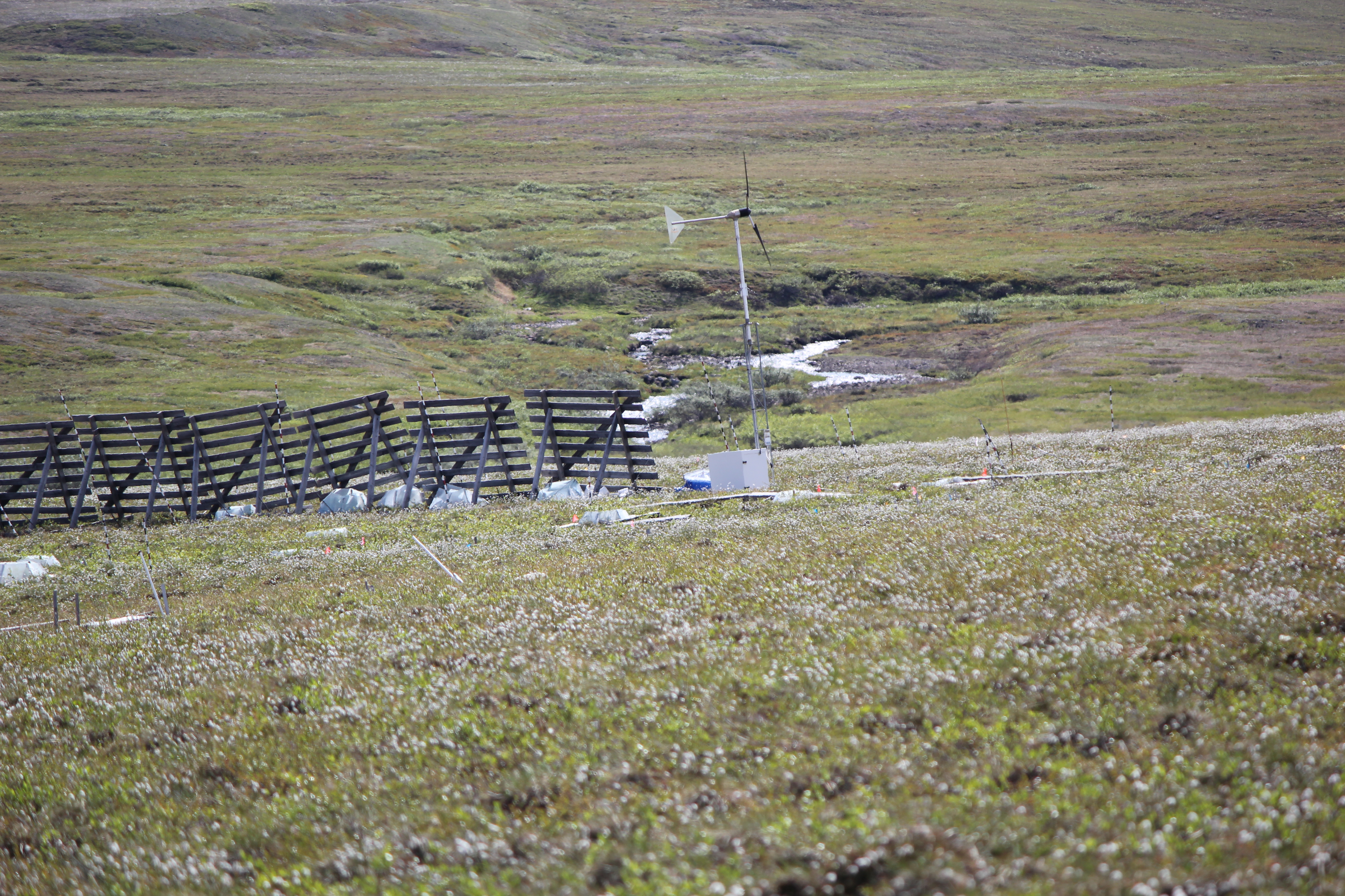 A snow fence and an anenometer. Toolik Field Station, Alaska.