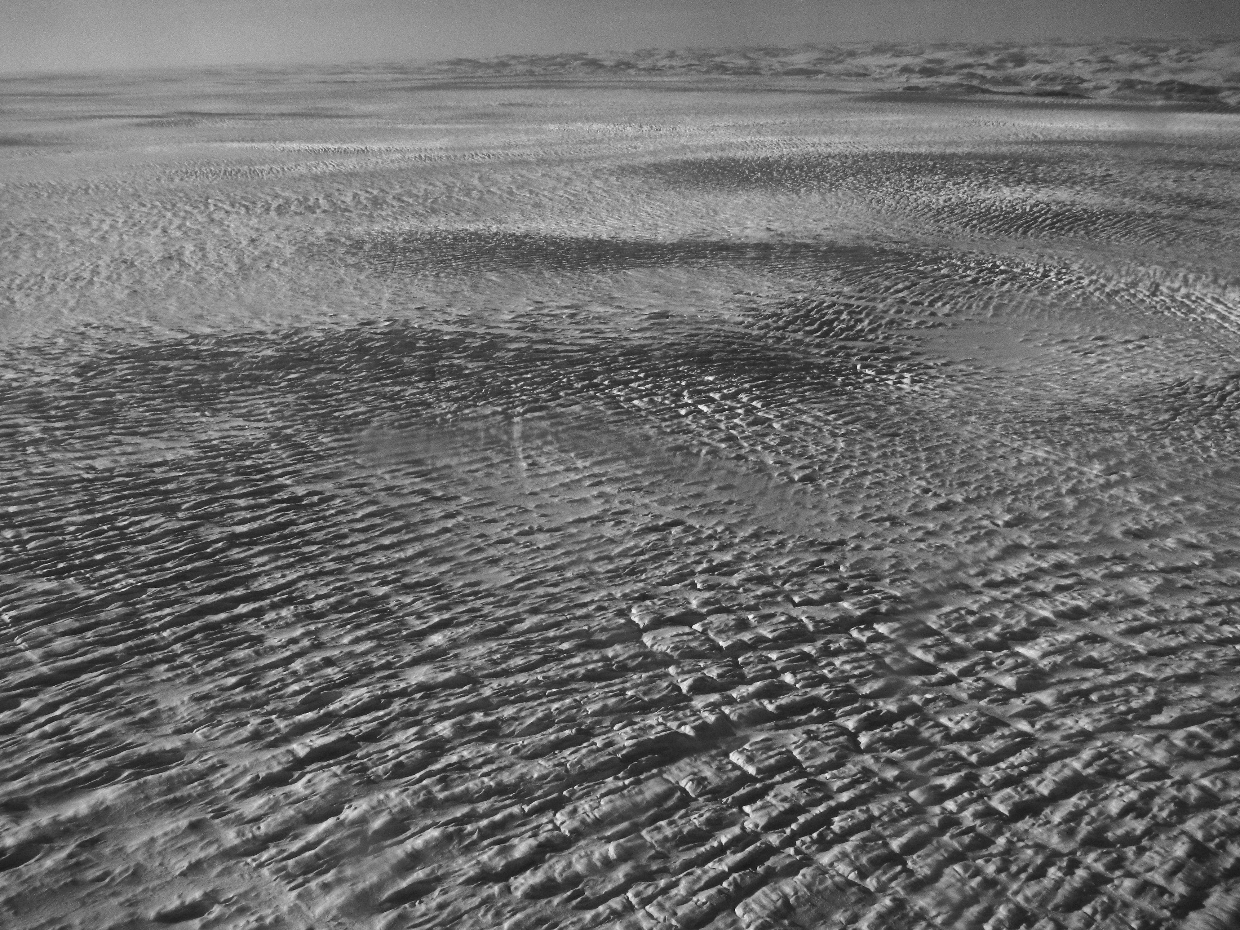 Crevasses in the upper Jakobshavn drainage in Greenland.