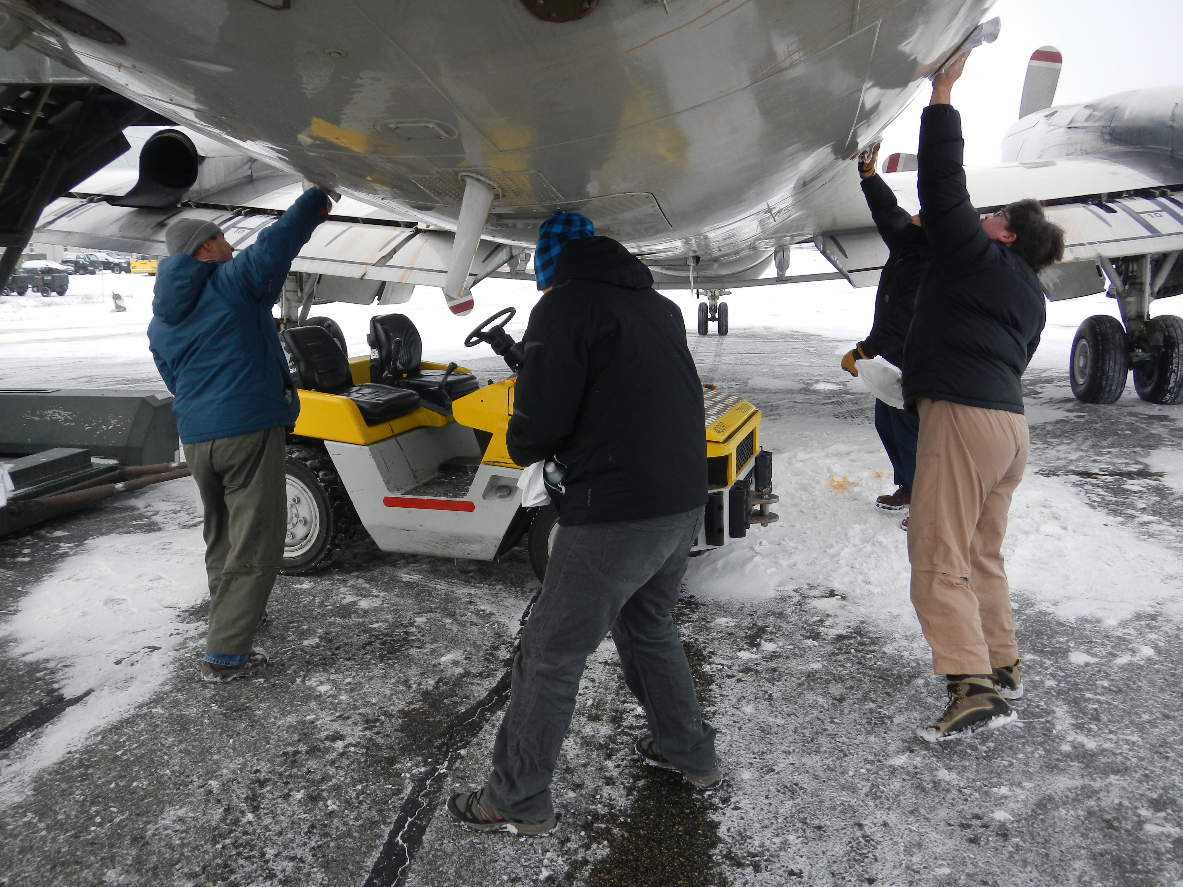 Russell Hood: "Wiping down the residual de-icing fluid before flying. The instruments must have clear glass!" Kangerlussuaq, Greenland.