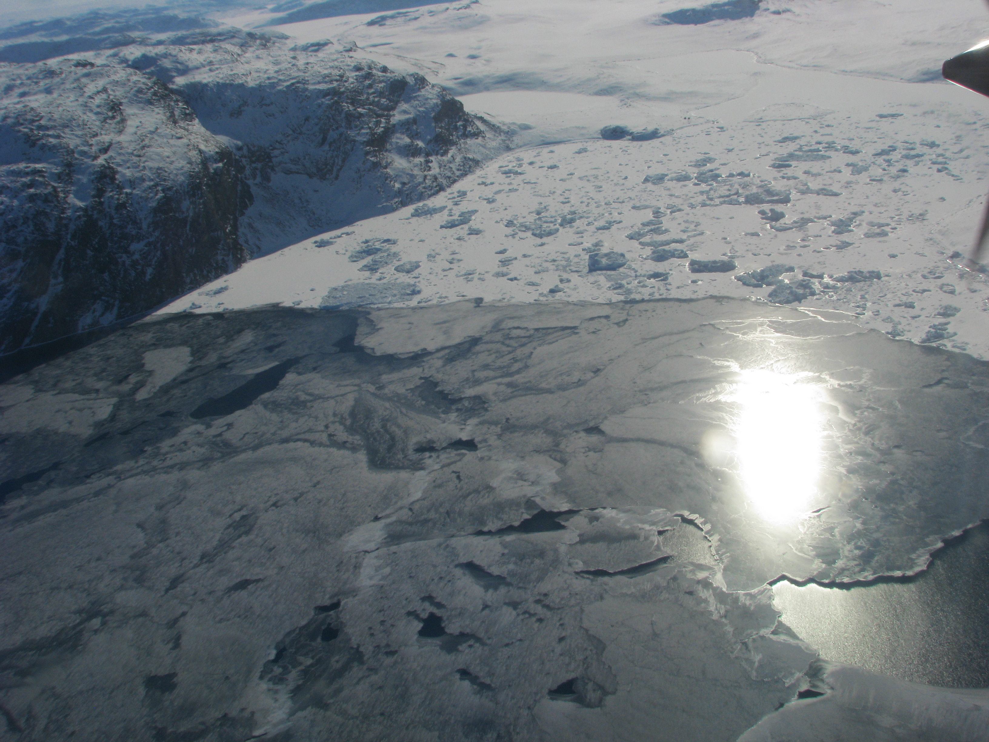 Young sea ice forms near Jakobshavn Glacier, Greenland.