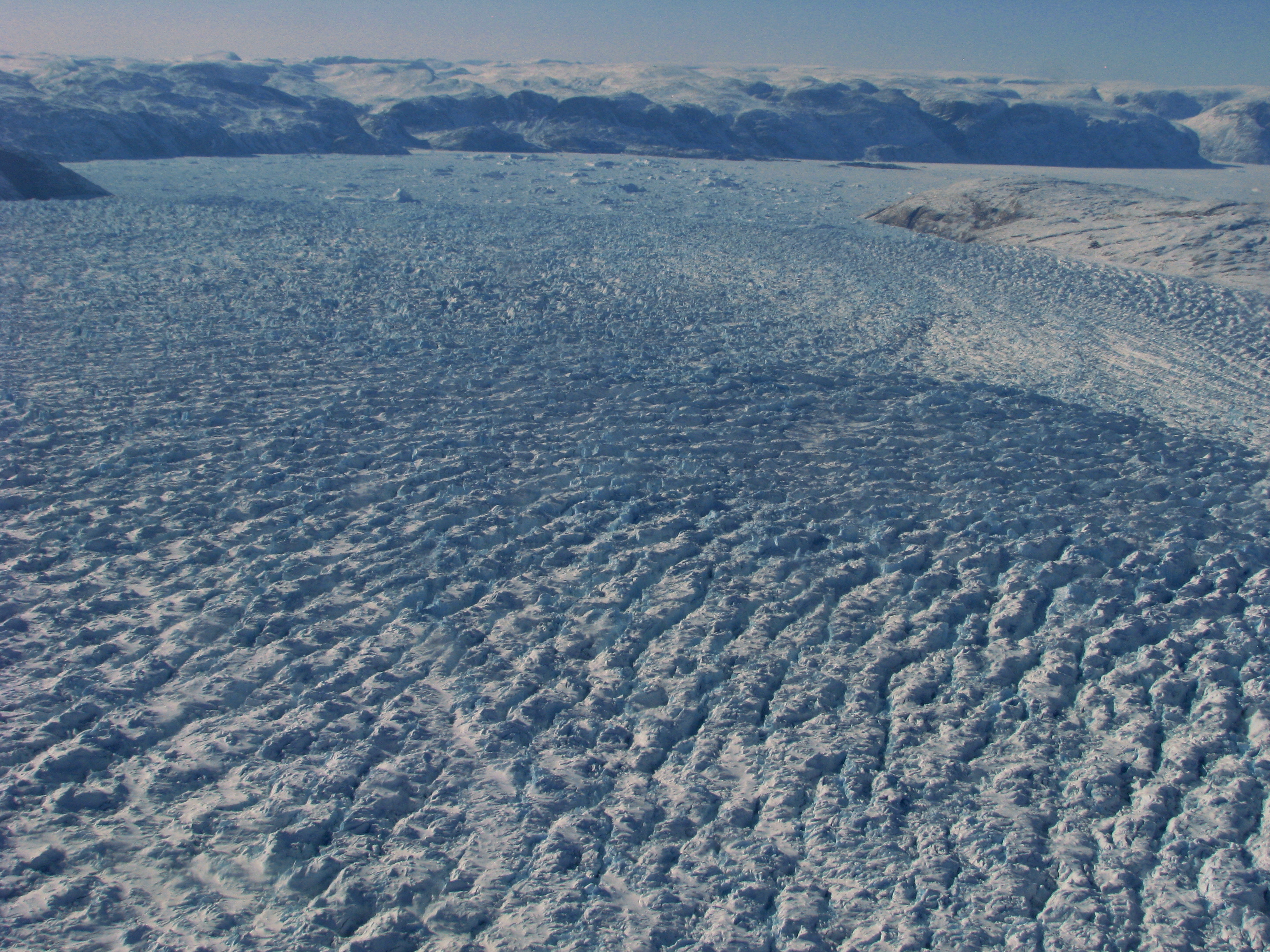 Looking down a glacier north of Jakobshavn Glacier in Greenland.