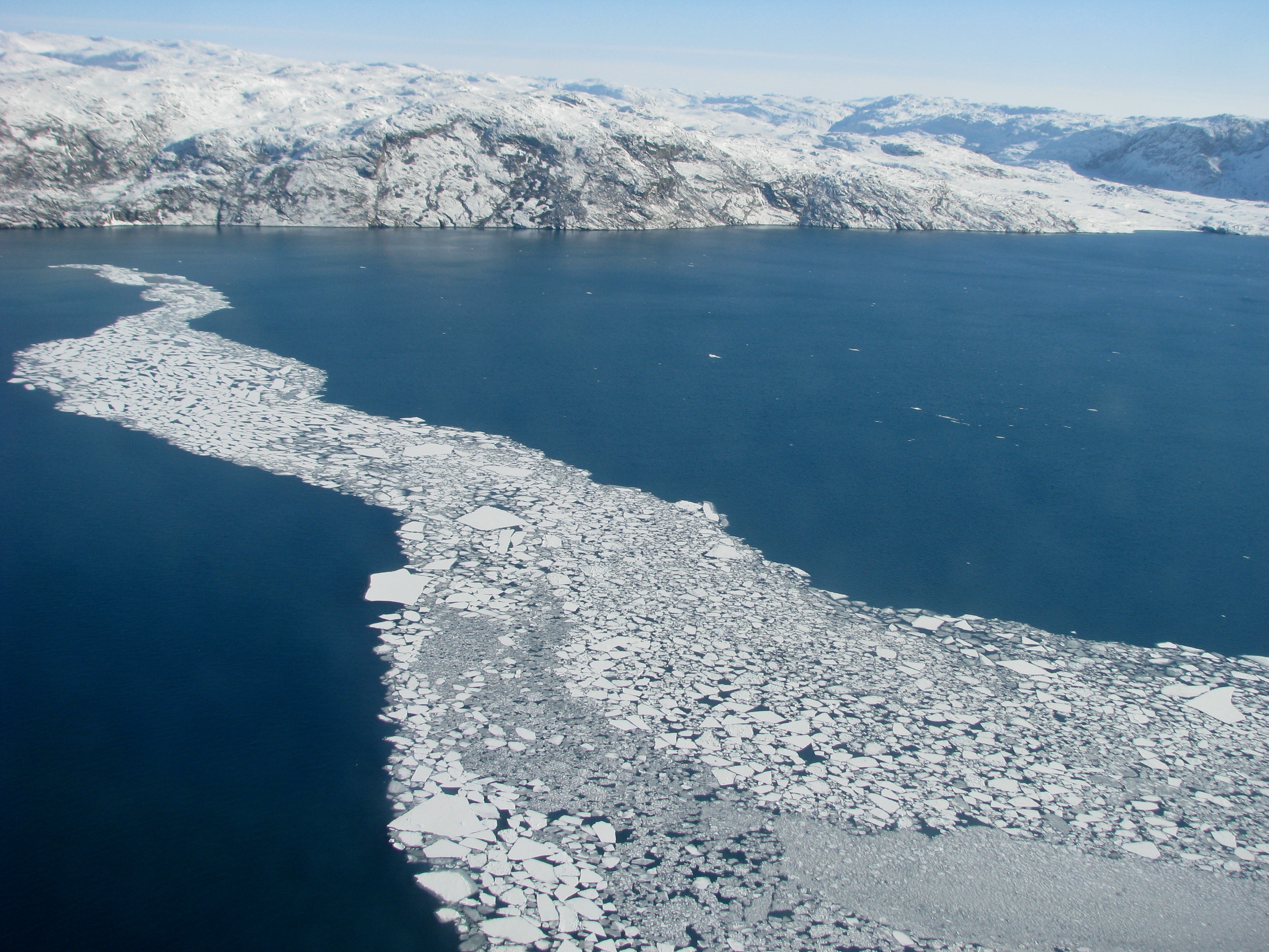A view of some broken up sea ice. Aboard the P-3 Orion flying over Greenland.