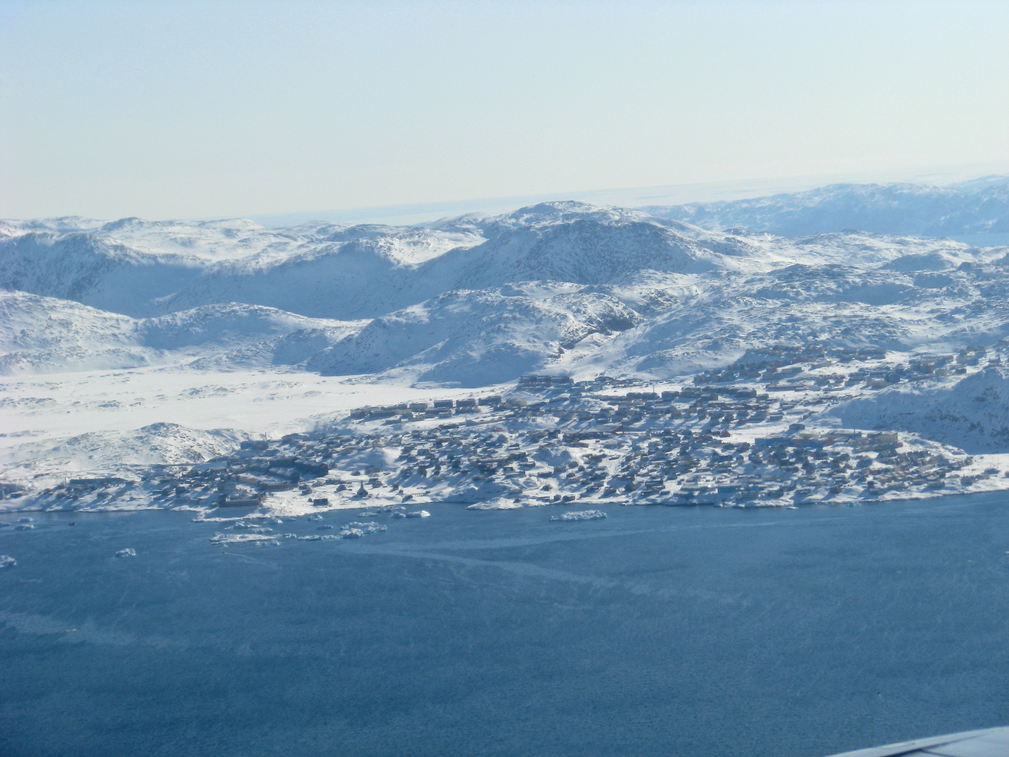 A view of Ilulissat, Greenland from aboard the P-3 Orion.