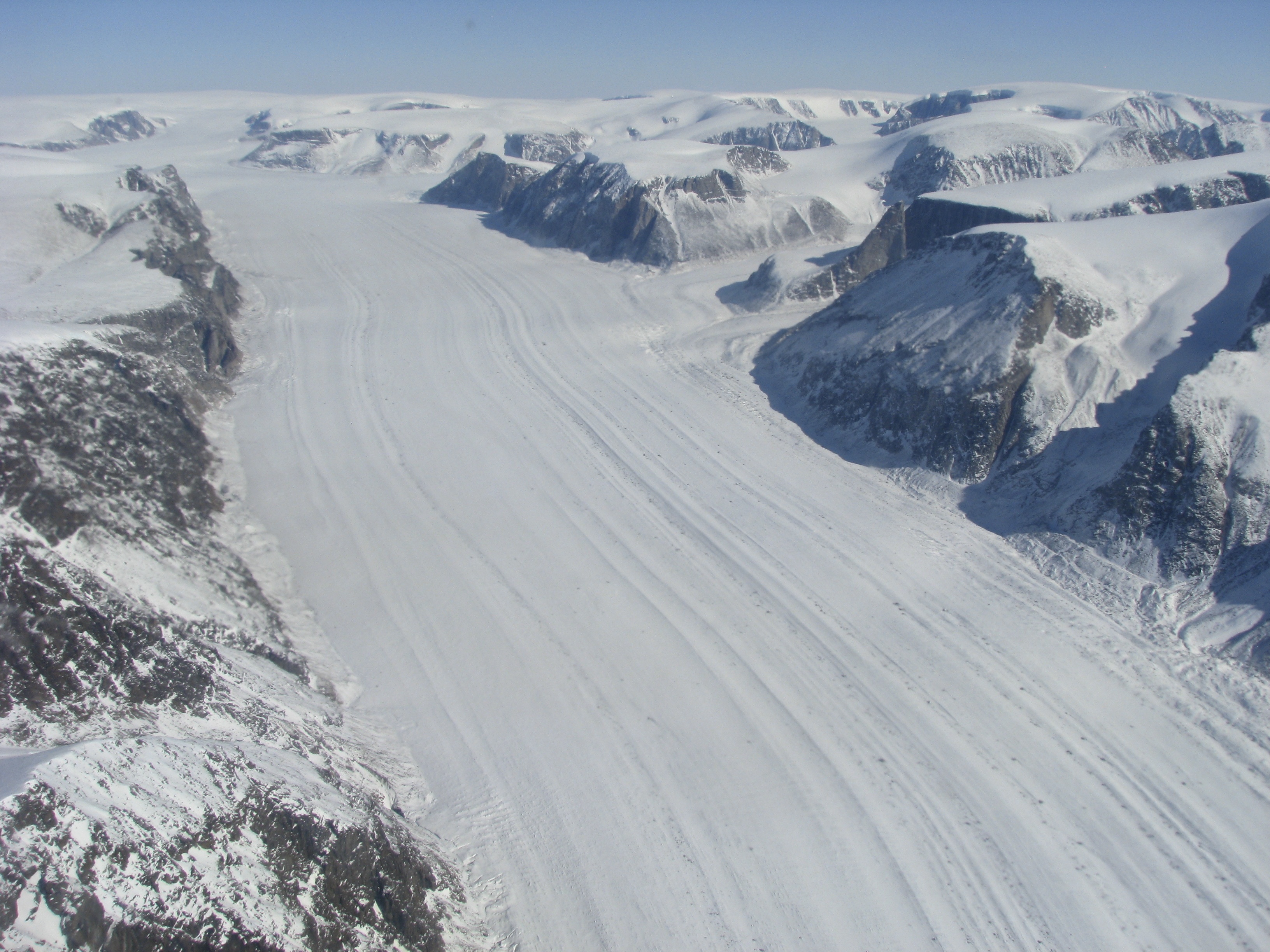 A valley glacier in Baffin Island, Canada.