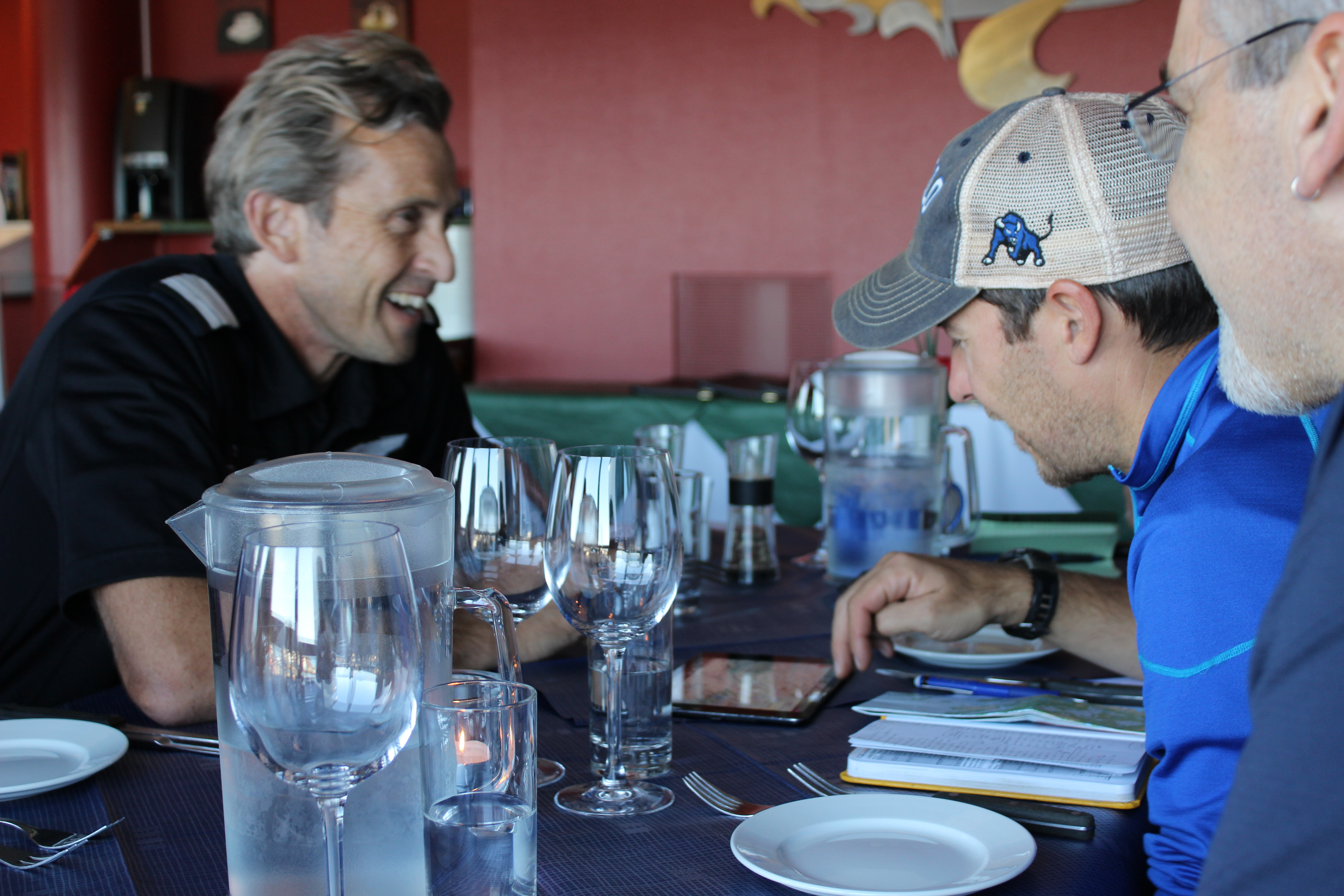 Dr. Jason Briner goes over the intinerary with the pilot one last time. Maniitsoq, Greenland.