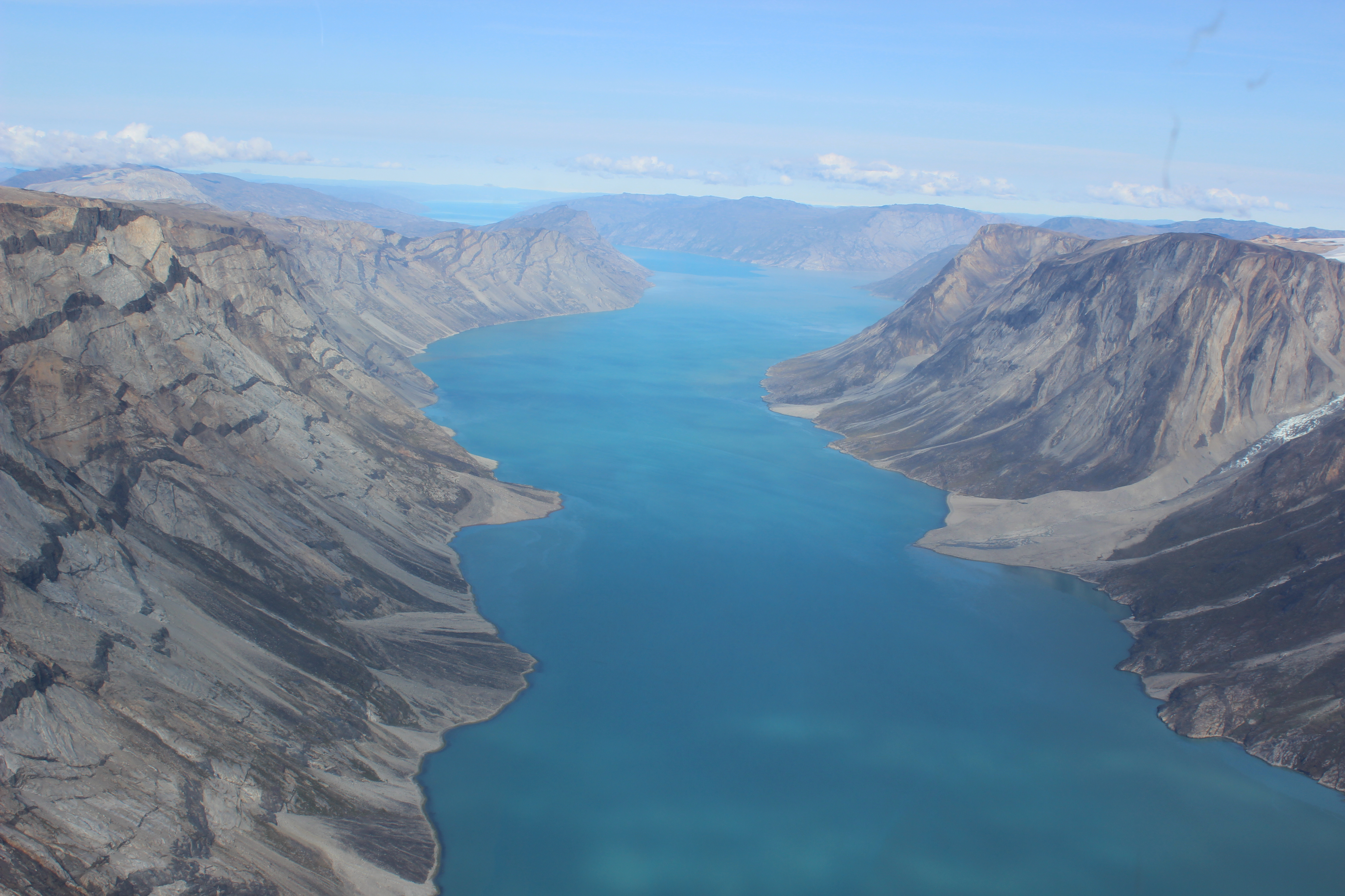 Metamorphic rock in a glacial fjord along the Sukkertoppen Ice Cap, Greenland.