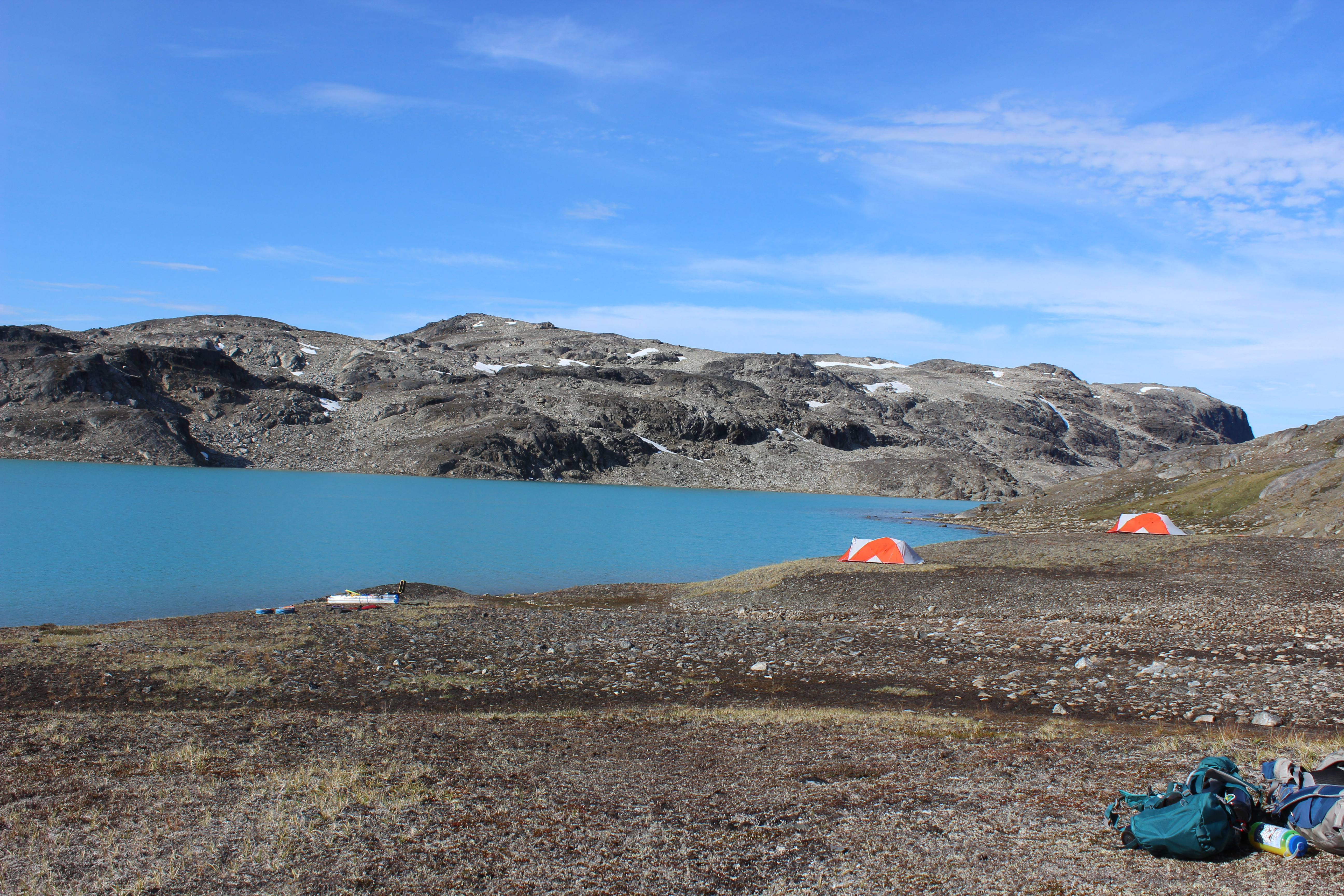 Lil' Nug Base Camp 2 is named after the small reminant of a glacier that is across the lake. Base Camp 2 – Lil' Nug, Greenland.