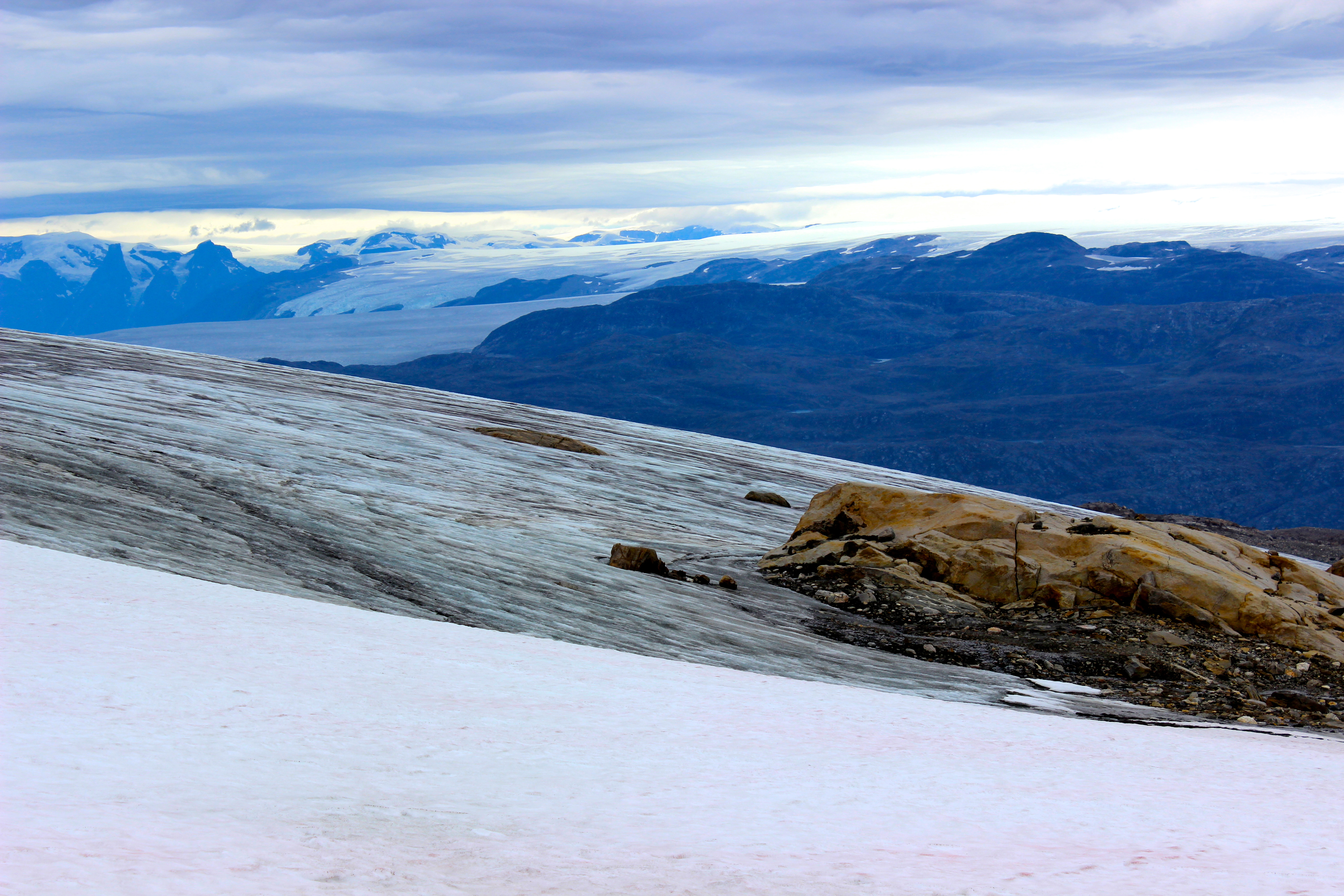 A view looking toward Twiliogerne which lies on the opposite side of the fjord. Hiking to Quglugianguit Glacier, Greenland.