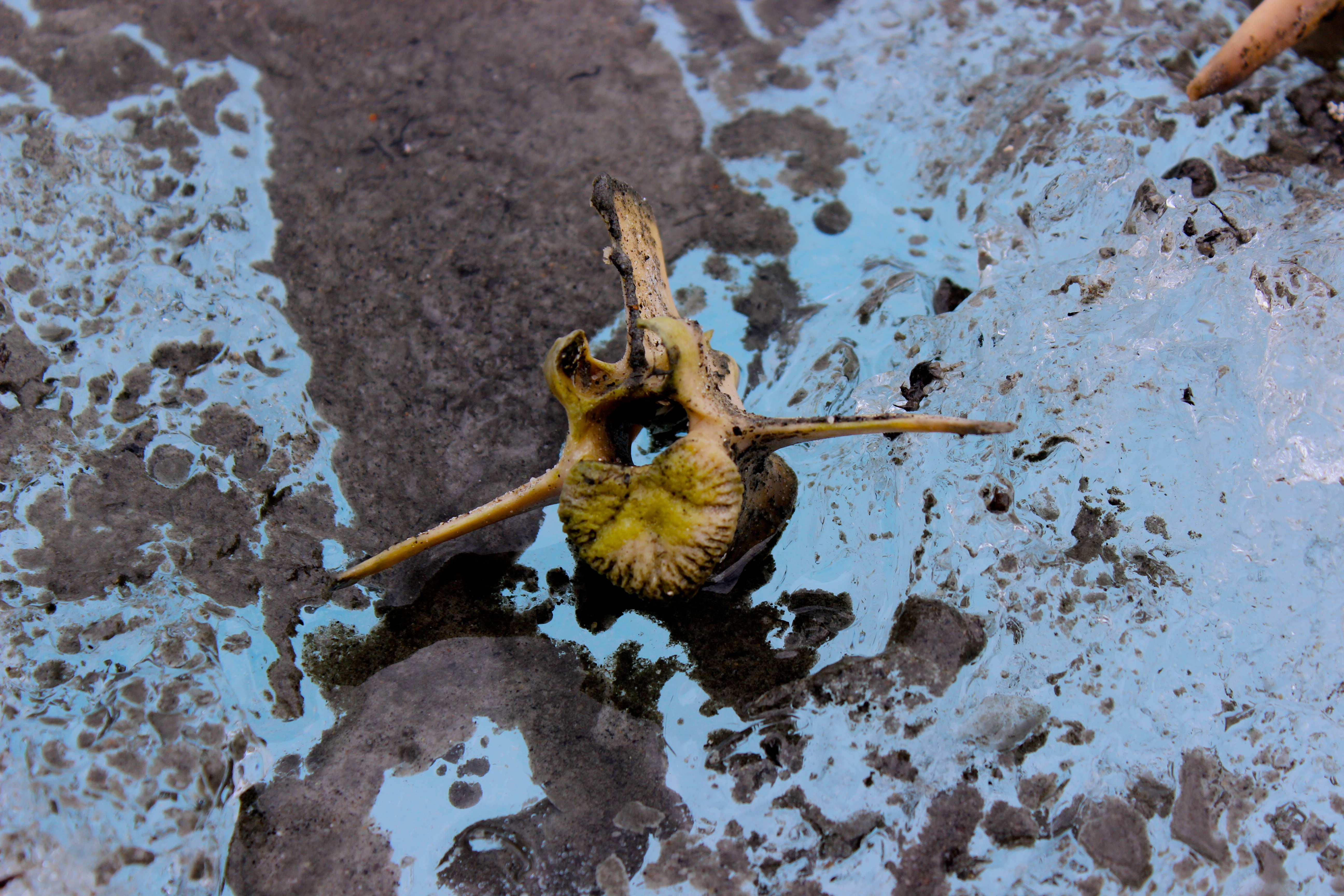 Vertebrae bones of a caribou completely preserved on top of Quglugianguit Glacier, Greenland.