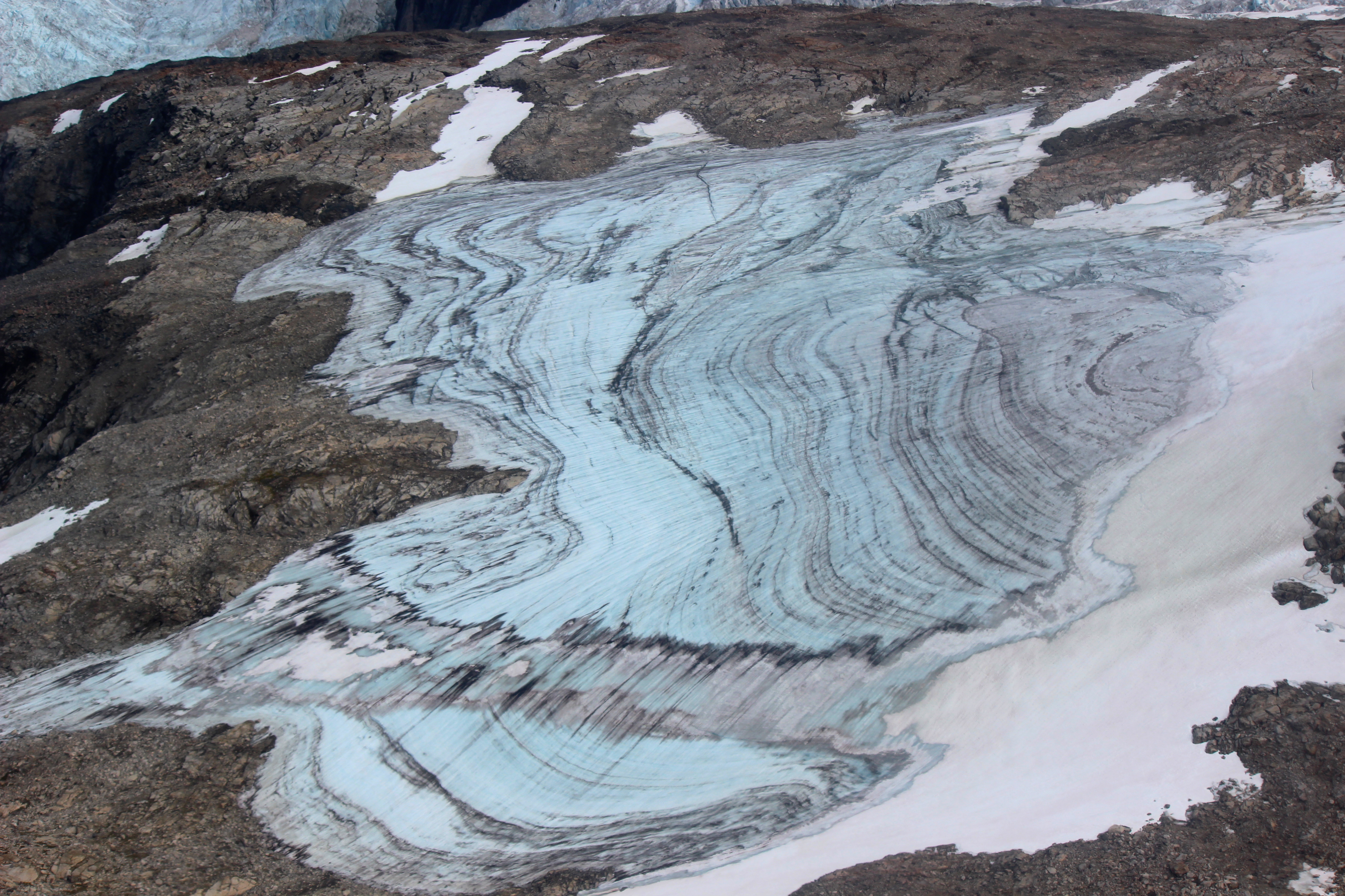 Patterns in glaciers near Sukkertoppen Ice Cap, Greenland.
