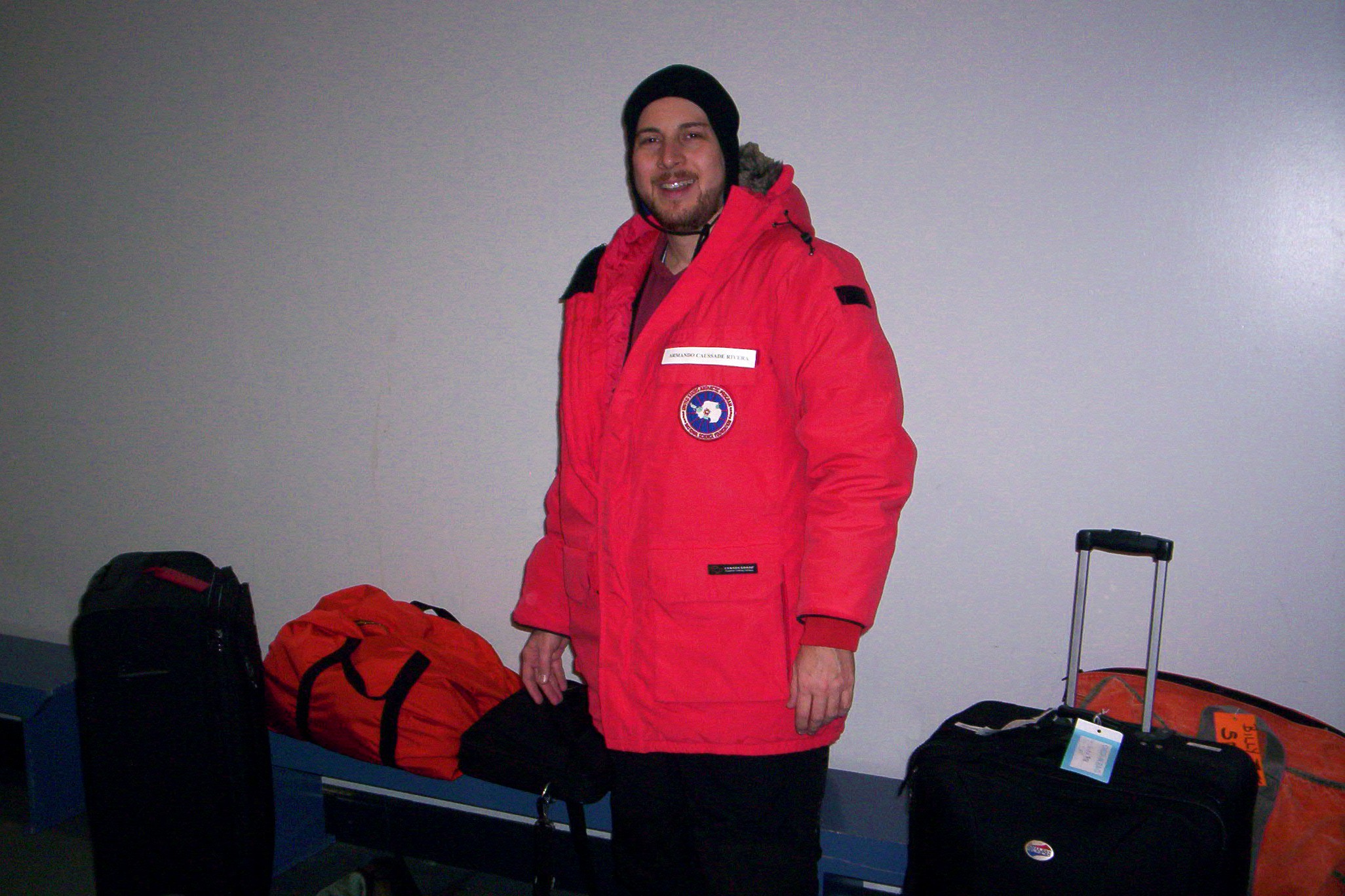Armando getting ready with his extreme cold weather (ECW) gear. Christchurch, New Zealand.