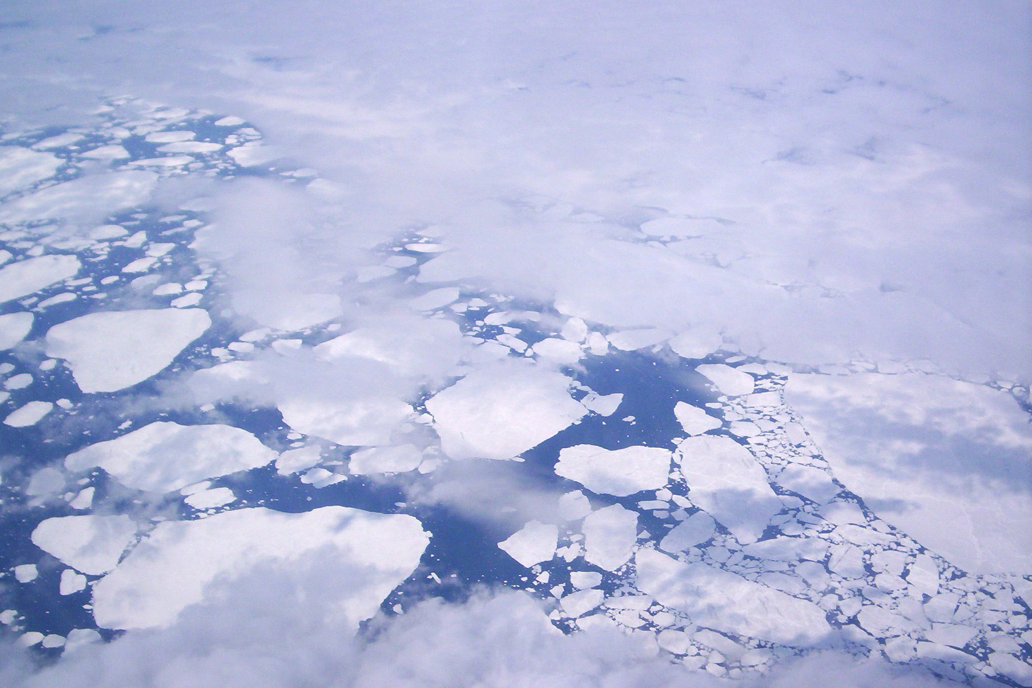 The view over the south Pacific Ocean around latitude 73° south, flying south on the way to Antarctica.