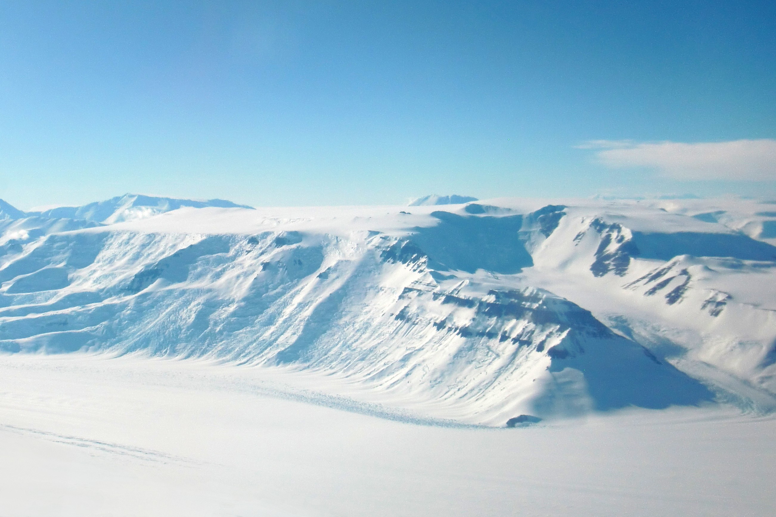 Flying over the Transantarctic Mountains, Antarctica around latitude 84° south. This area is known as the Queen Alexandra Range.