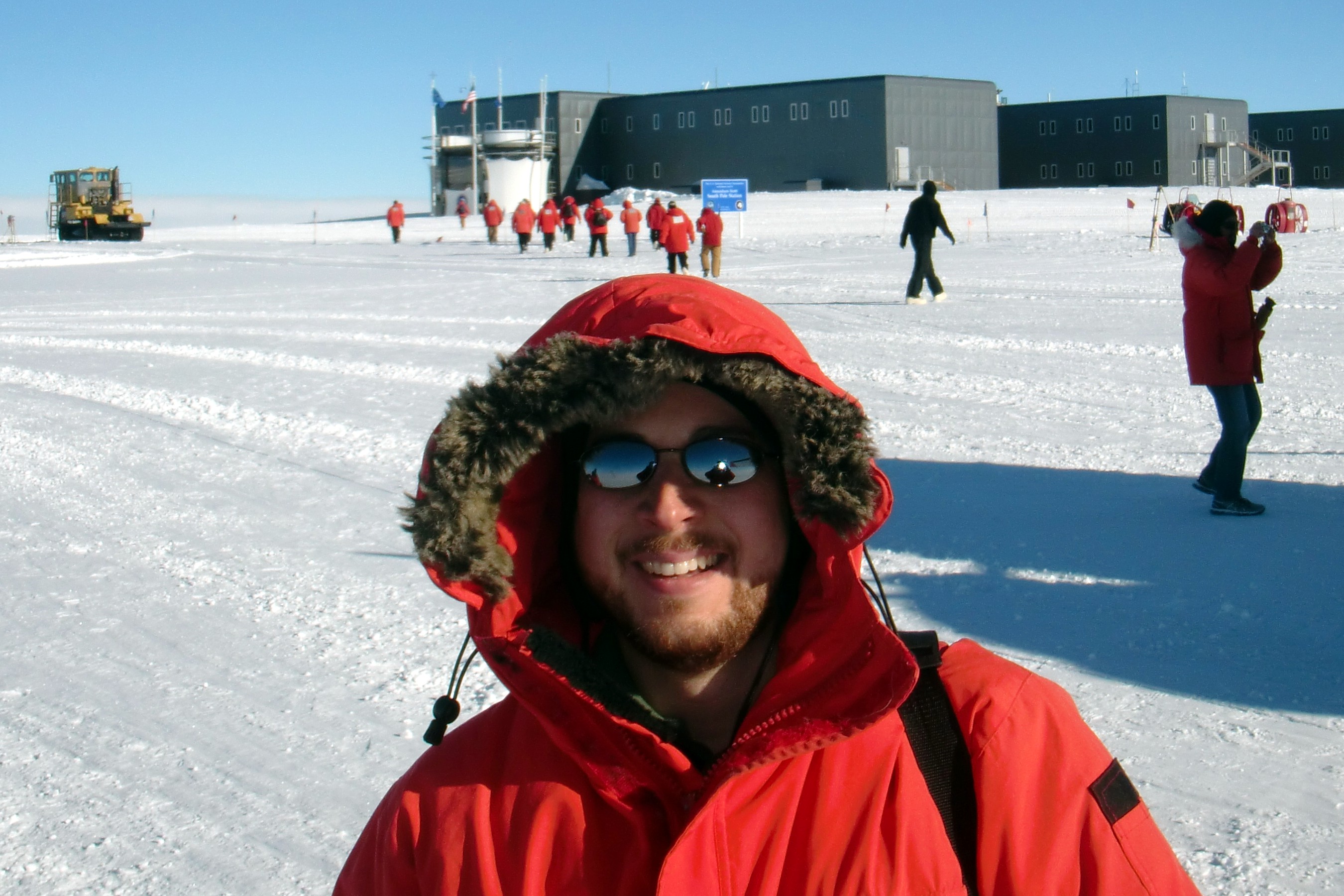 Armando Caussade arrives at the Amundsen-Scott South Pole Station, Antarctica.
