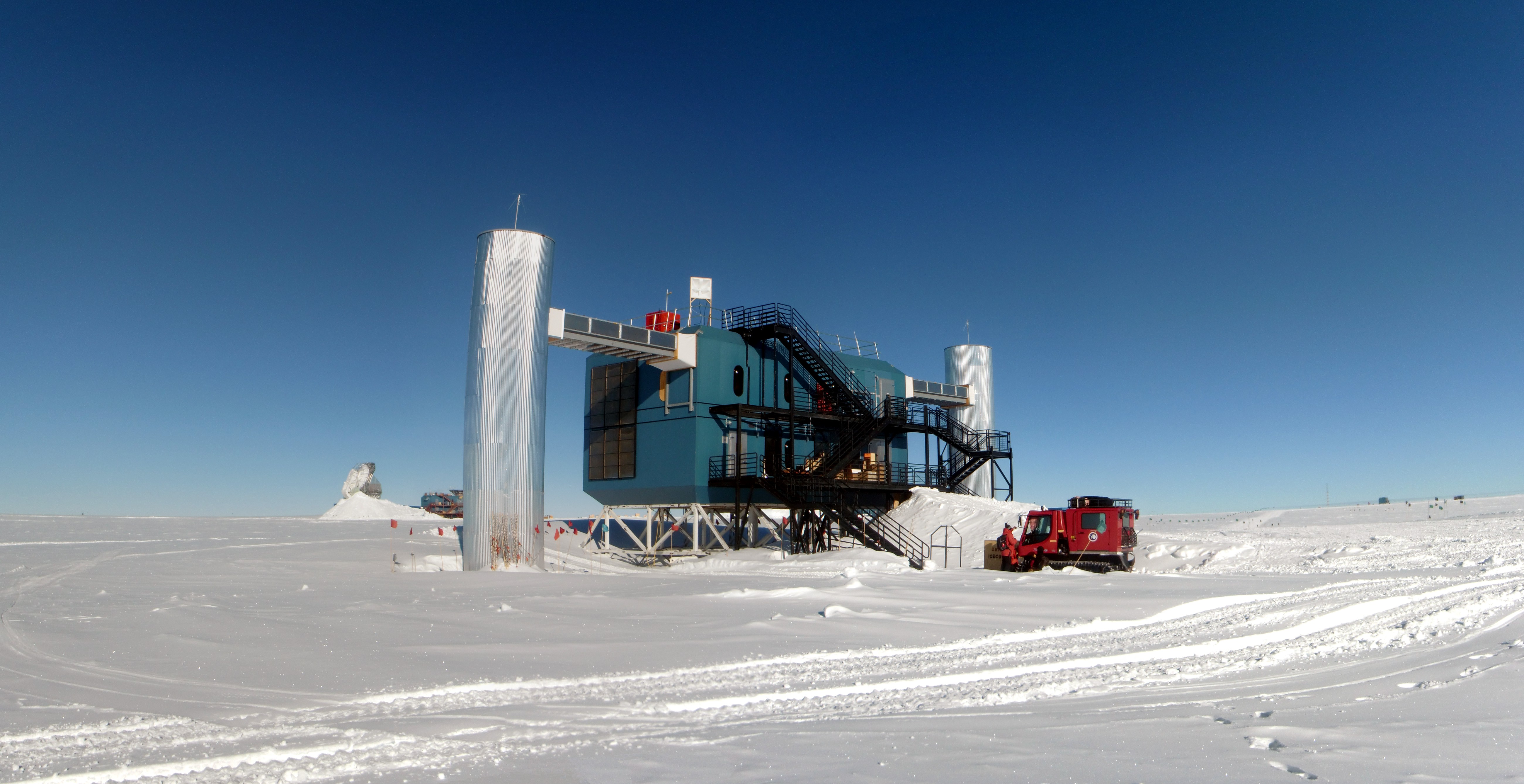 Panorama of the IceCube Laboratory near the Amundsen-Scott South Pole Station, Antarctica.