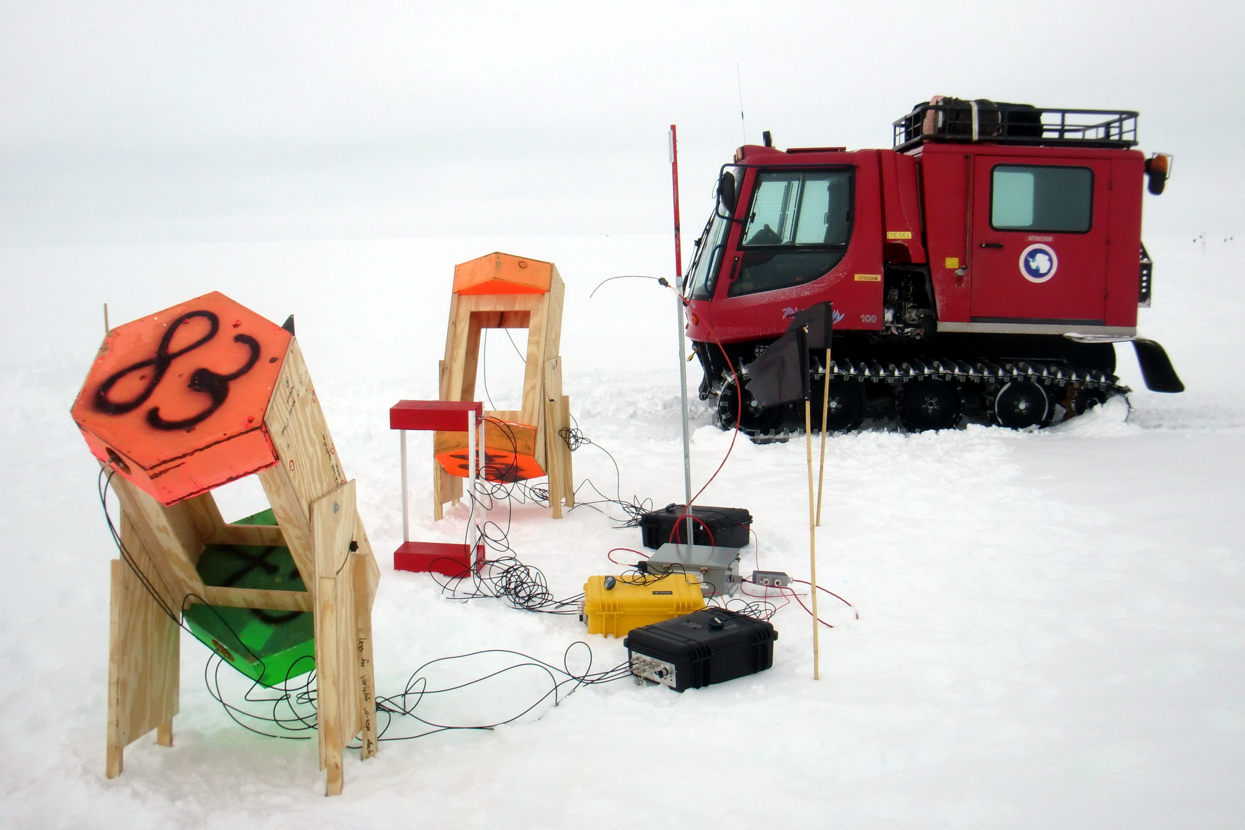 Cosmic ray sensors above an IceTop tank. Amundsen-Scott South Pole Station, Antarctica.
