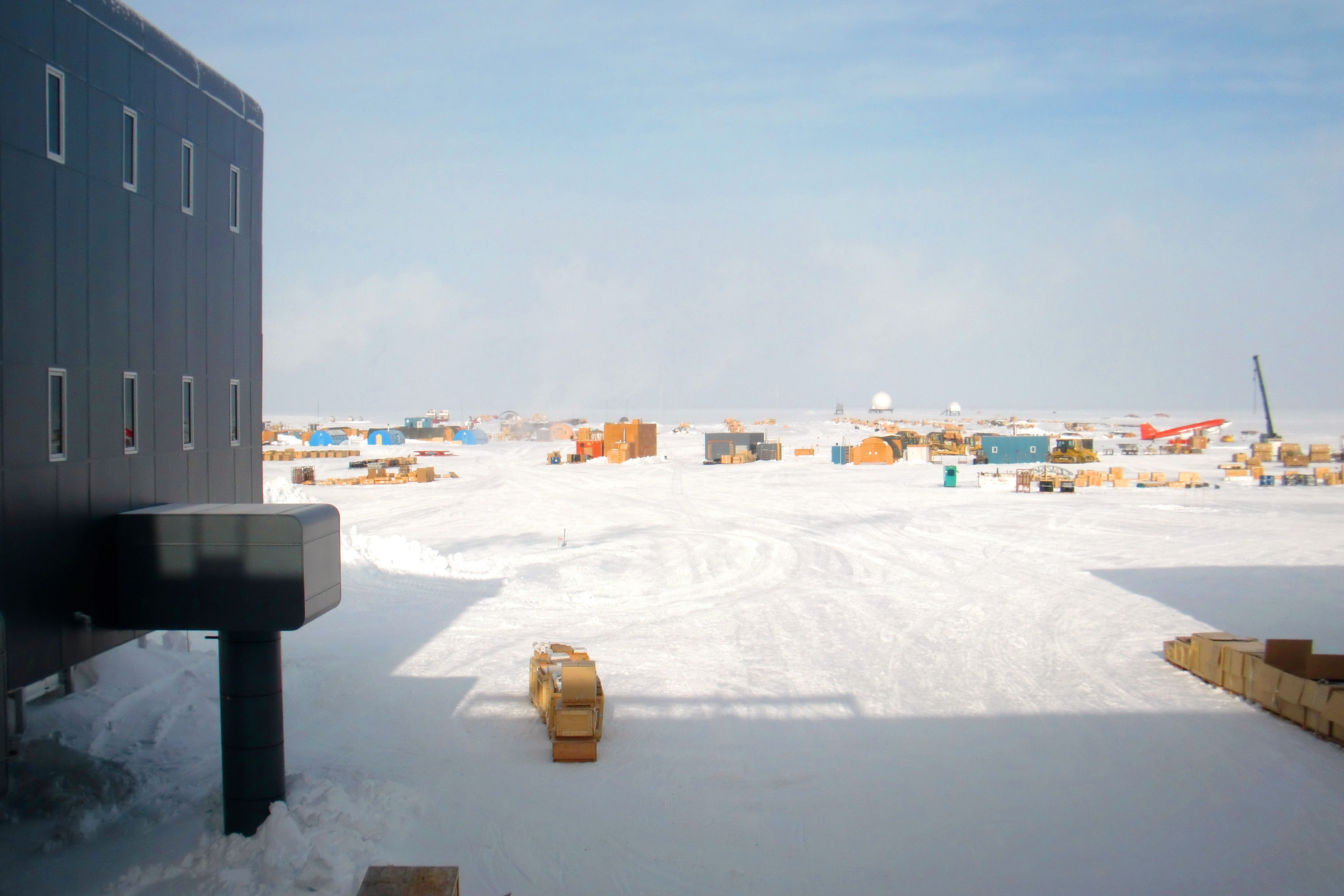 Midnight view from inside the Amundsen-Scott South Pole Station. Local time 12:01 am.