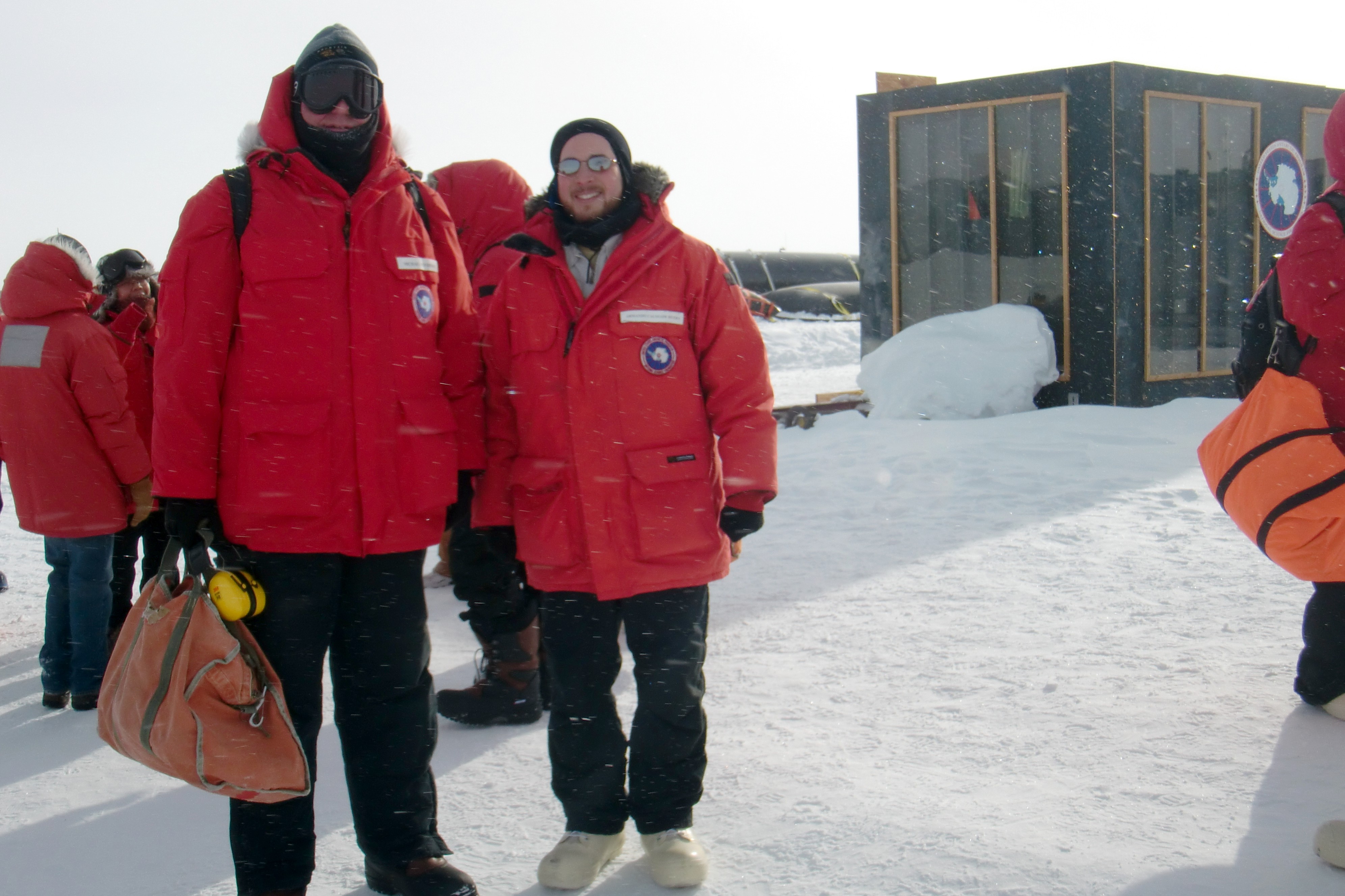 Michael DuVernois and Armando Caussade just before departure from the Amundsen-Scott South Pole Station, Antarctica.
