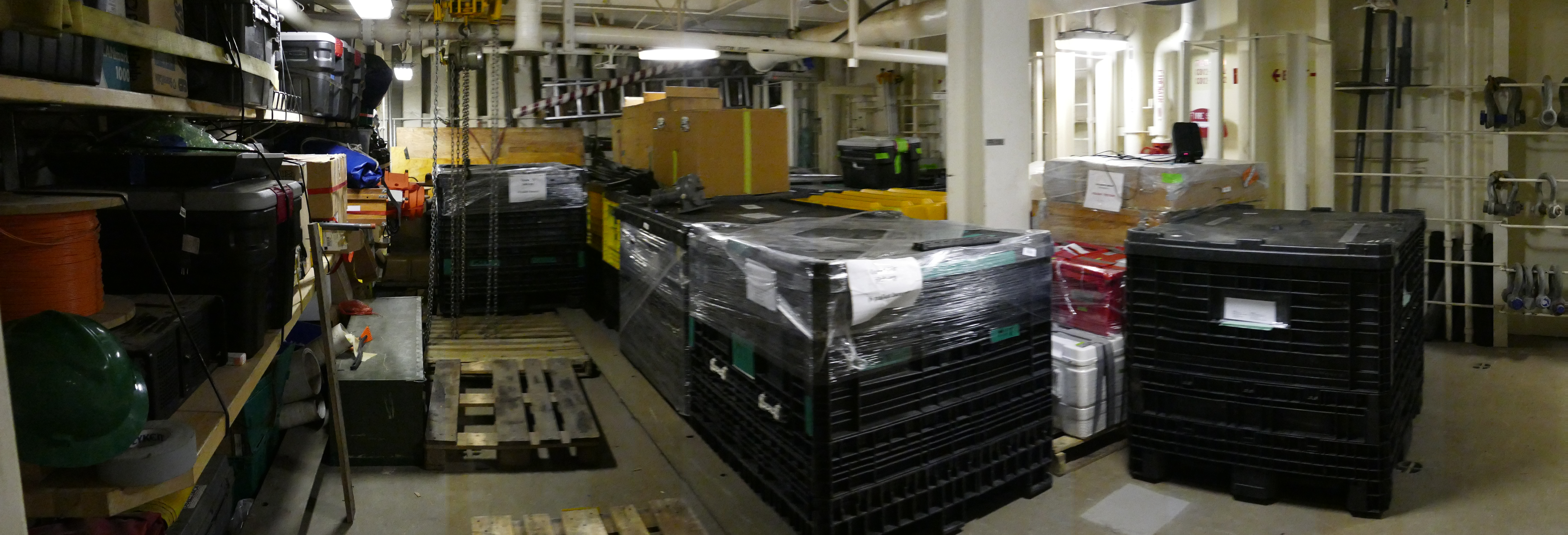 A wide-angle view of Cargo Hold 1, which is beneath Healy’s waterline. The hold is conveniently located below the main science lab. U.S. Coast Guard Base in Seattle, Washington.