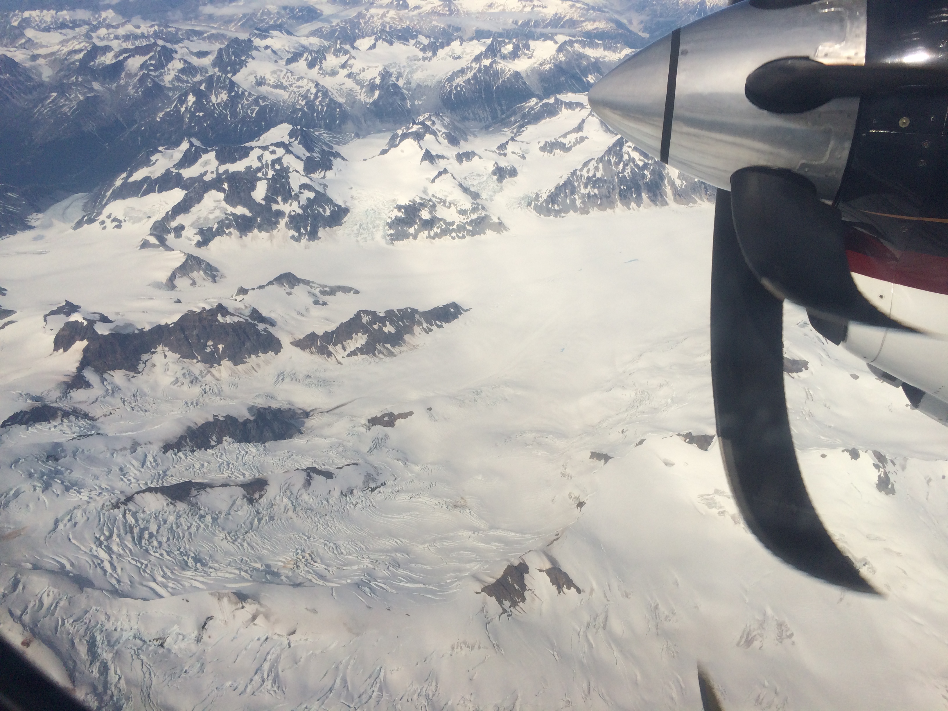 On the flight from Anchorage to Dutch Harbor, the plane flew over the glaciated Augustine Volcano on the Alaska Peninsula.