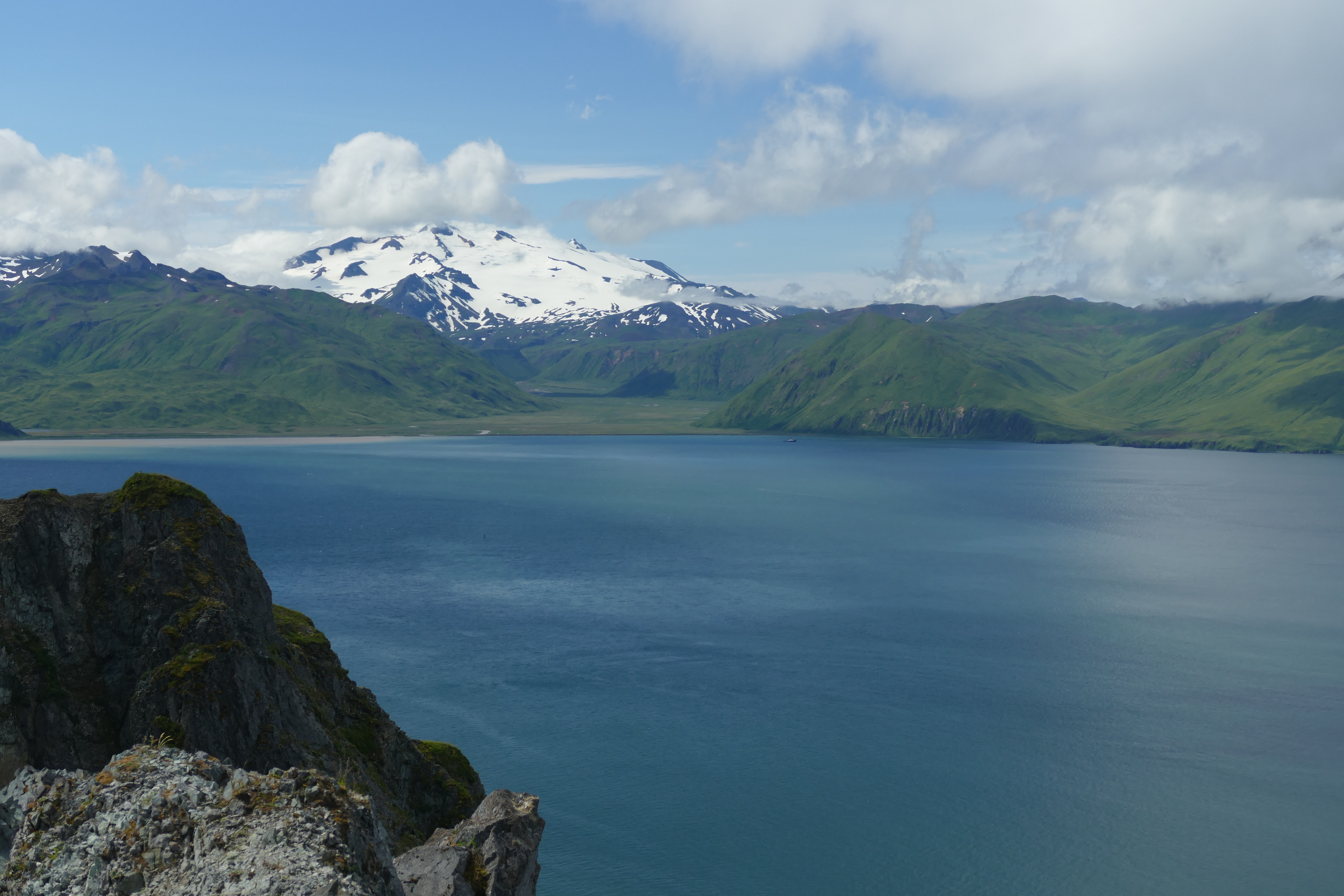 Mt. Makushin, Unalaska Island, Alaska is an active, glaciated volcano that rises 2,036 meters (6,680 ft) above sea level. Its last eruption was in January 1995.