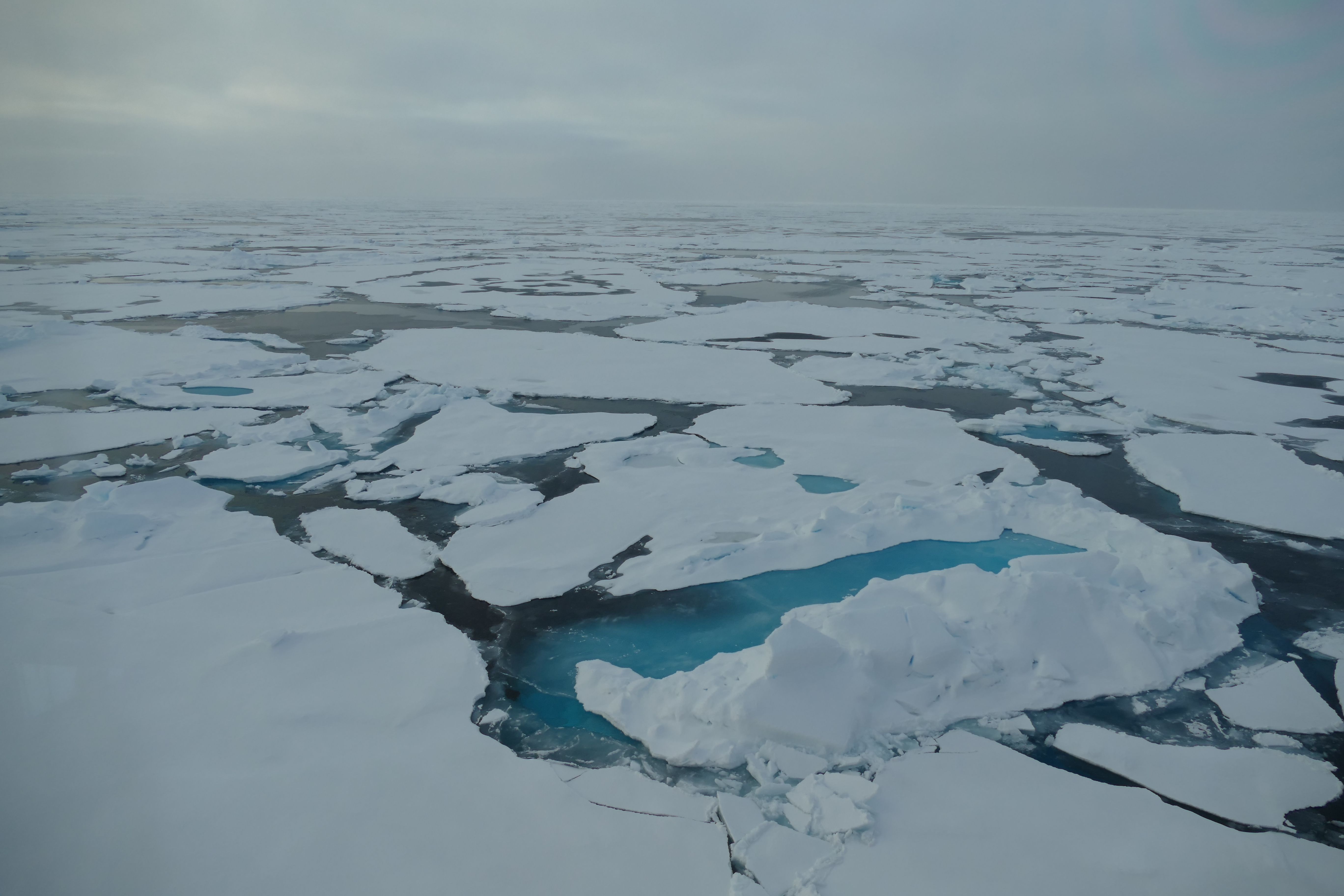 Ice floes in the Mendelev Rise region of the Arctic Ocean, aboard the USCGC Healy. 79.99°, -174.97°.
