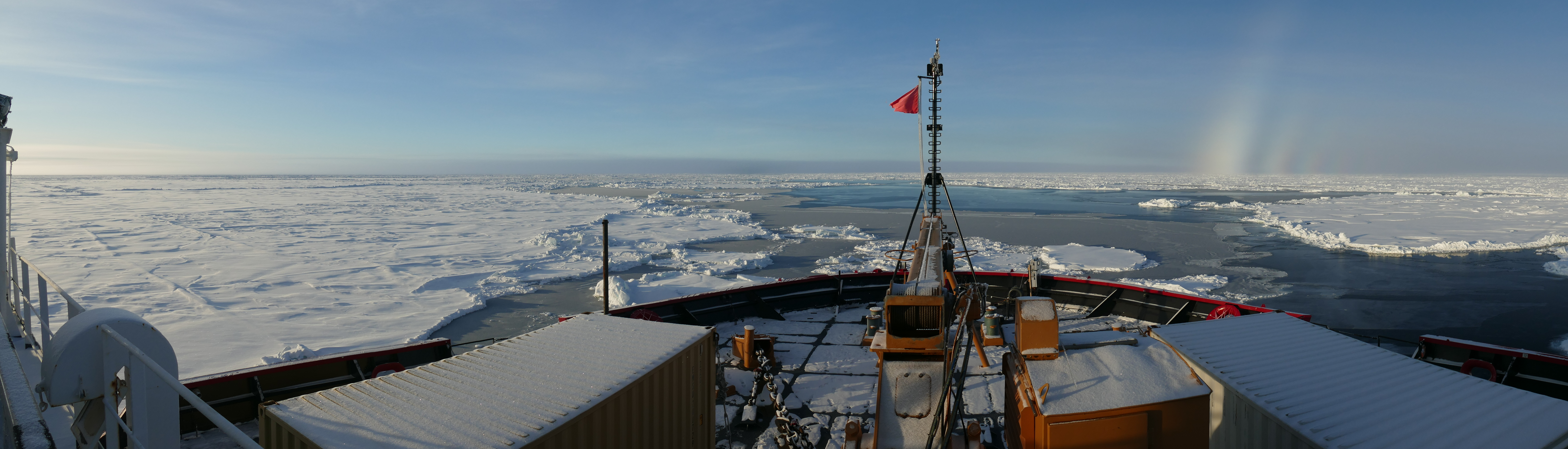 A triple fog bow appeared off the bow of the USCGC Healy at the North Pole.