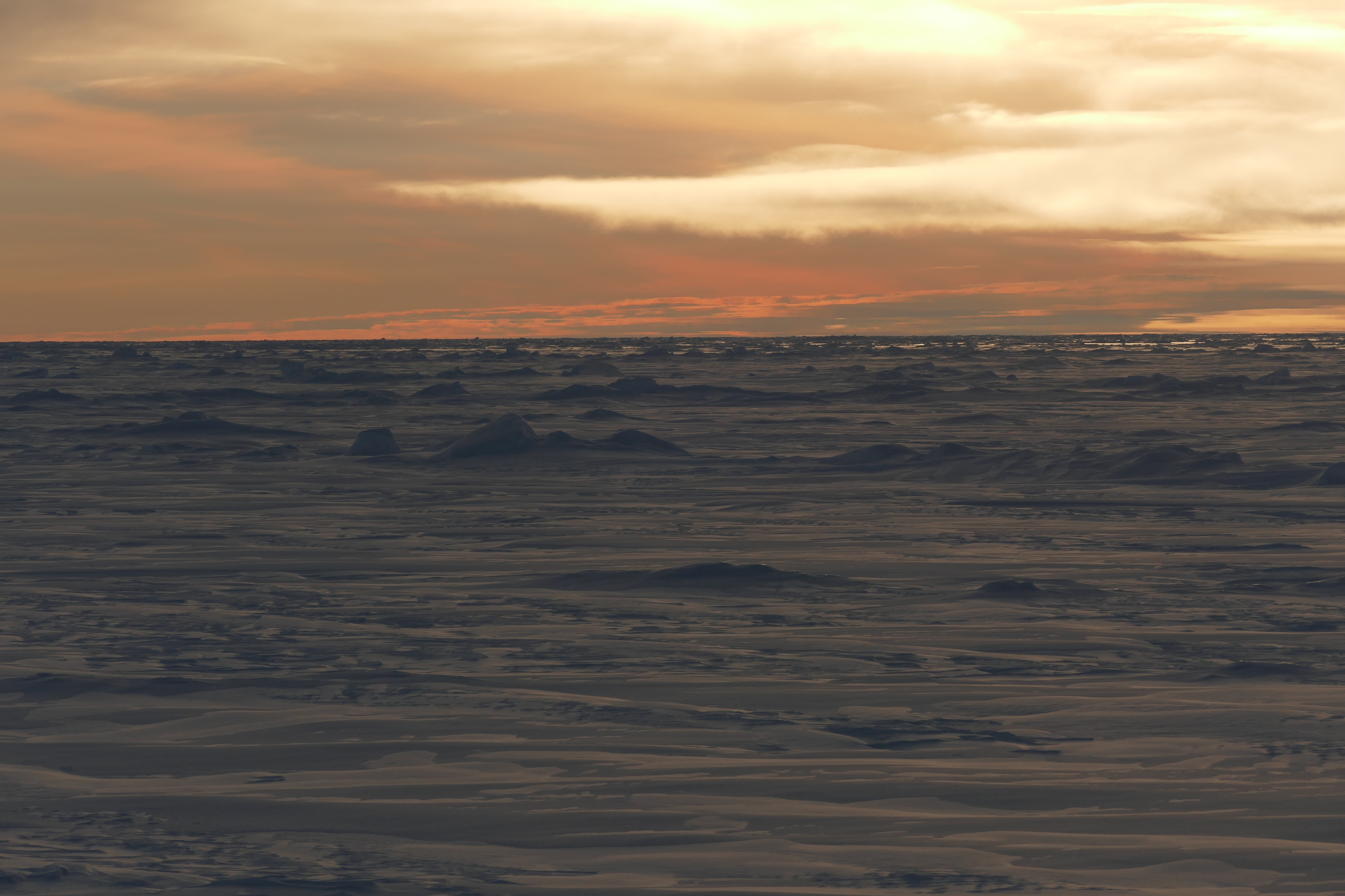 Bill Schmoker: "As the clouds broke up this morning it looked like a beautiful sunrise, but the sun hasn’t actually risen or set for several weeks on our cruise." Aboard the USCGC Healy in the Makarov Basin in the Arctic Ocean. 86.70°, -149.48°.