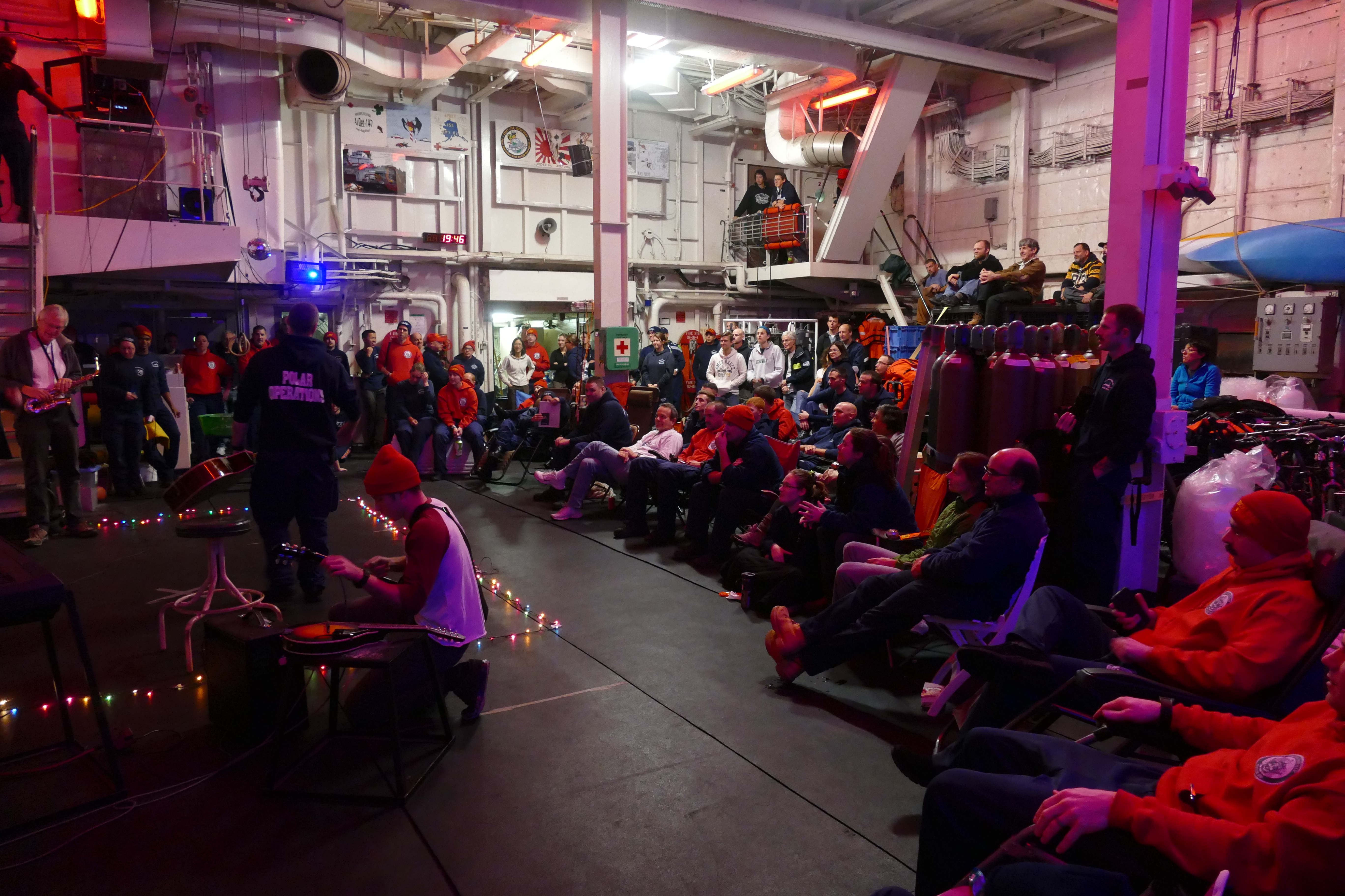 A talent show on Sept. 20 provided entertainment for crew and science team. Near the USCGC Healy at the Alpha Ridge in the north Canada Basin. 82.49°, -149.83°.