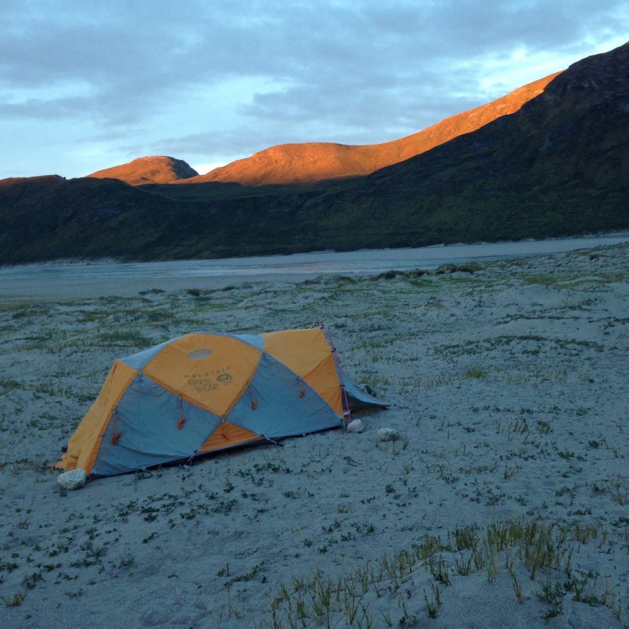 Midnight sun at the team's campsite near Kangerlussuaq, Greenland.