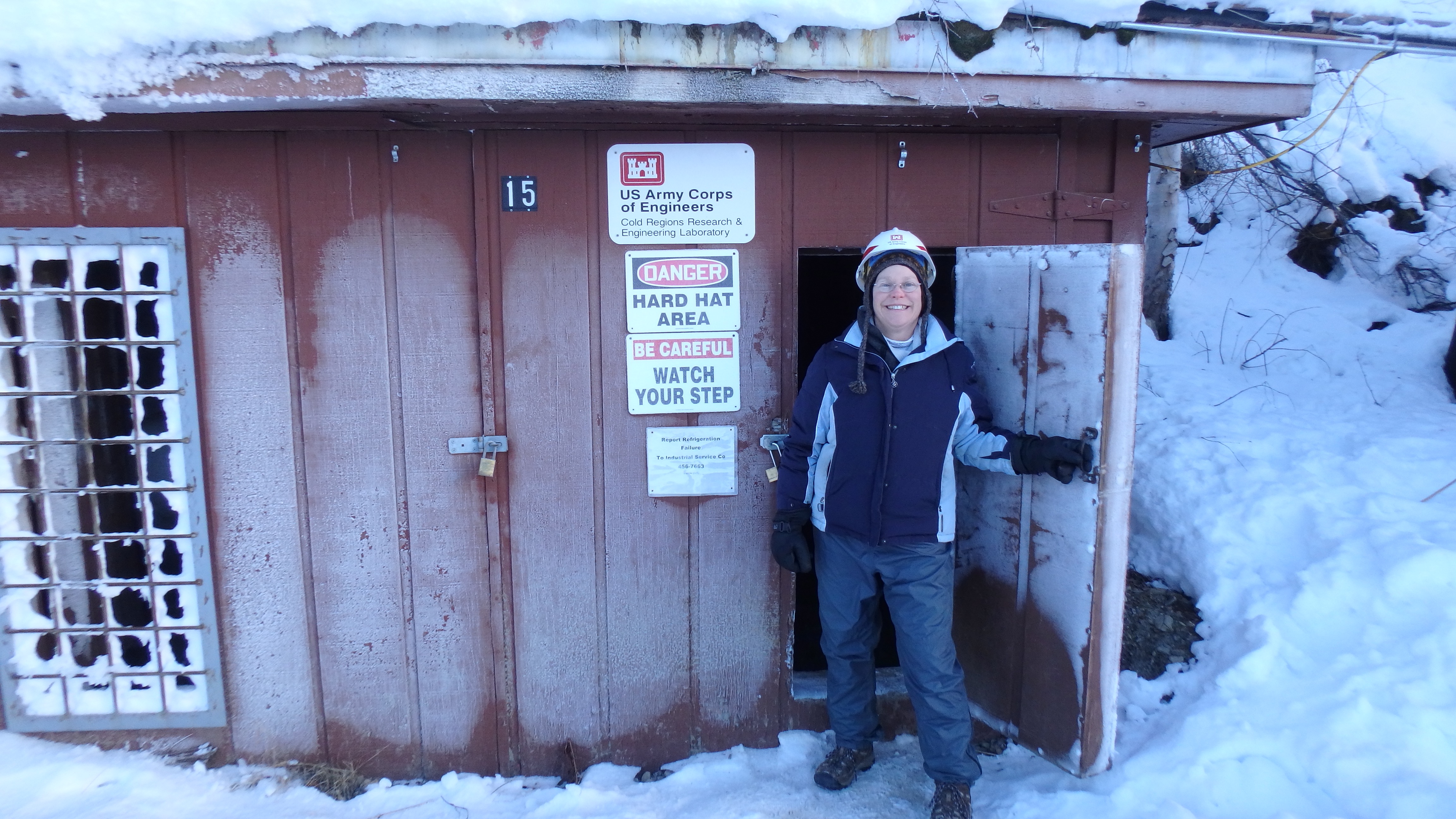 Anne Schoeffler stands in the entrance to the CRREL Permafrost Tunnel in Fox, Alaska.