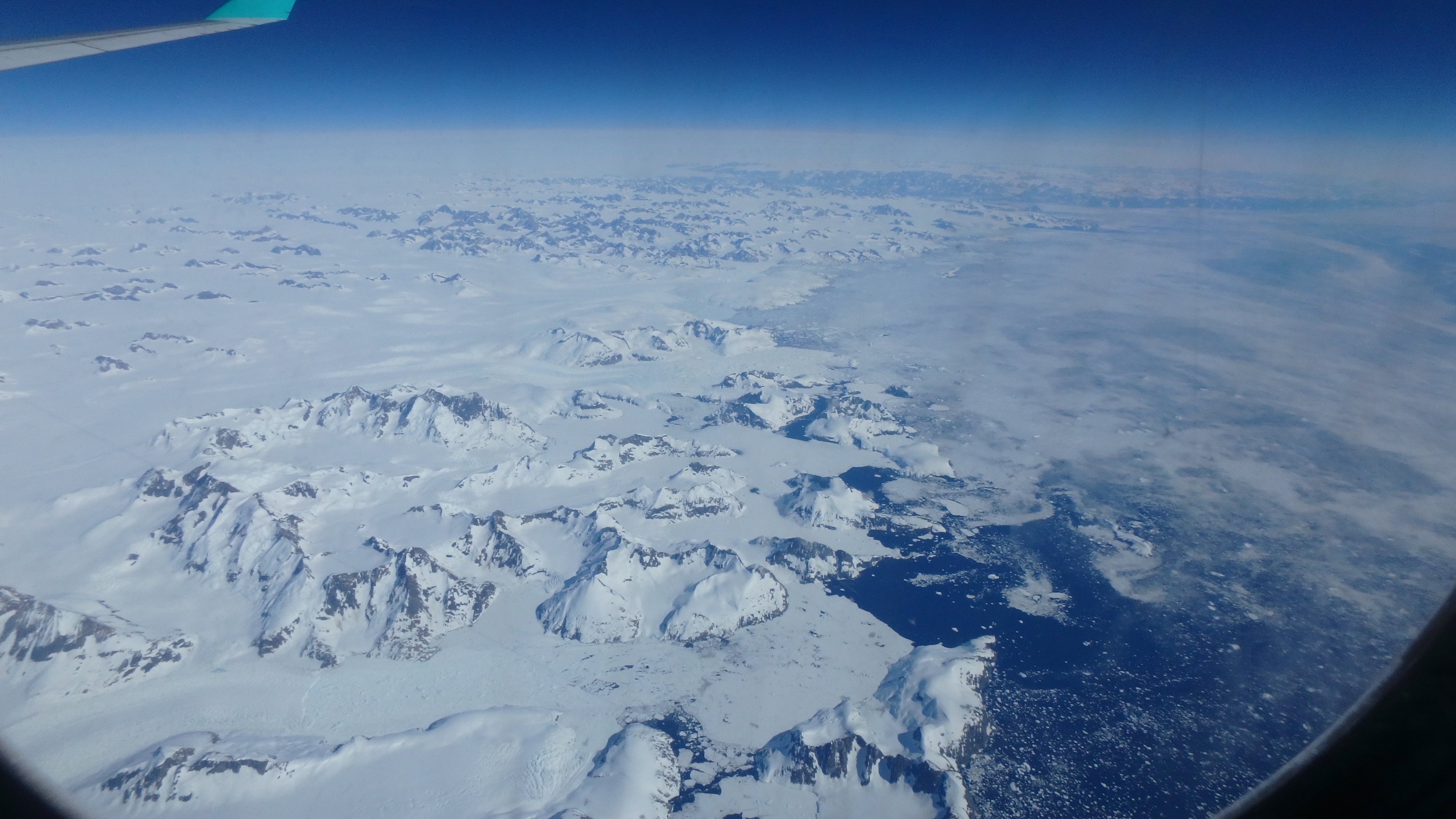 Greenland's coast as seen from the airplane.