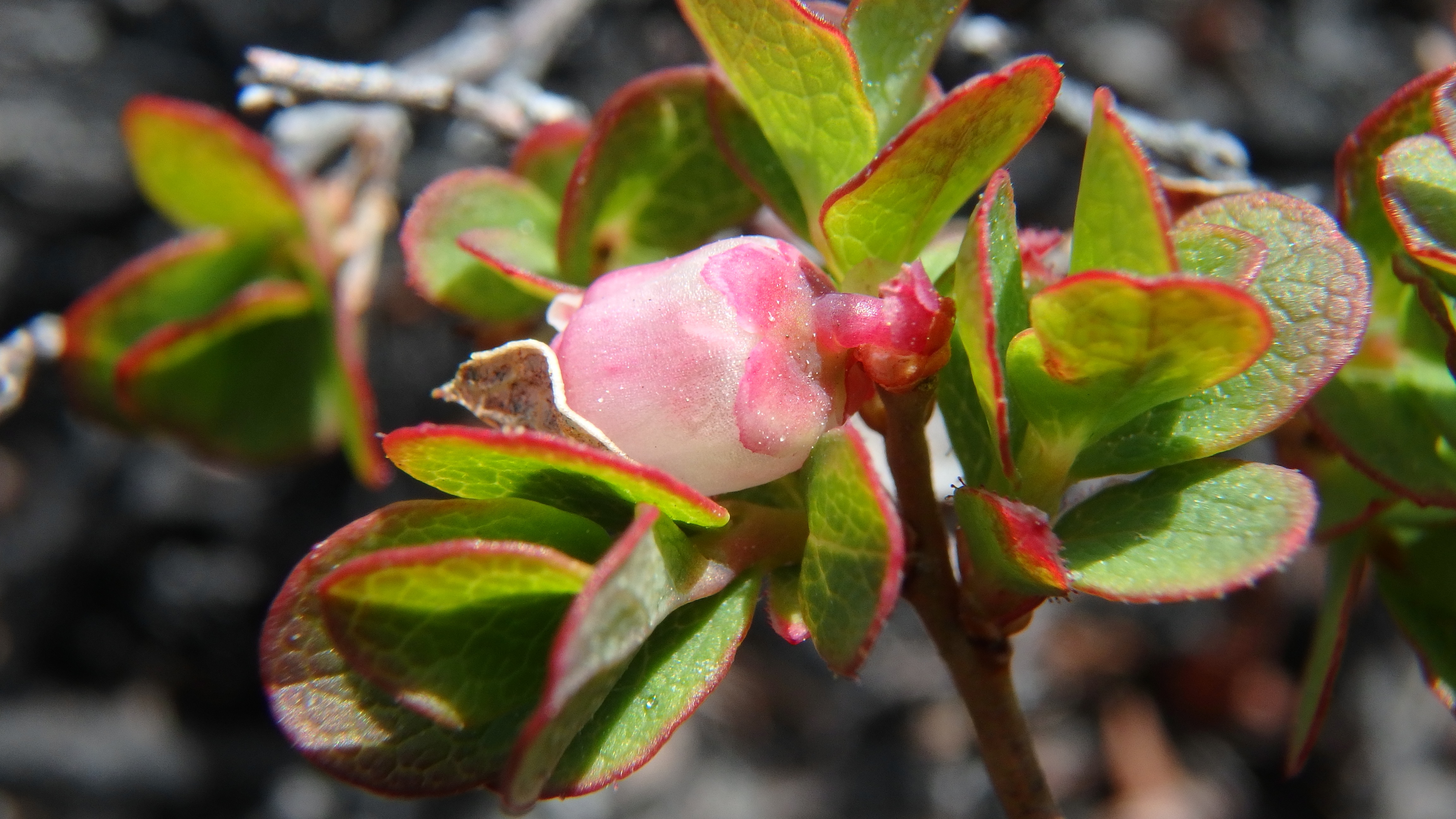 The flower on the blueberry plant (Vaccinium uliginosum). Kangerlussuaq, Greenland.