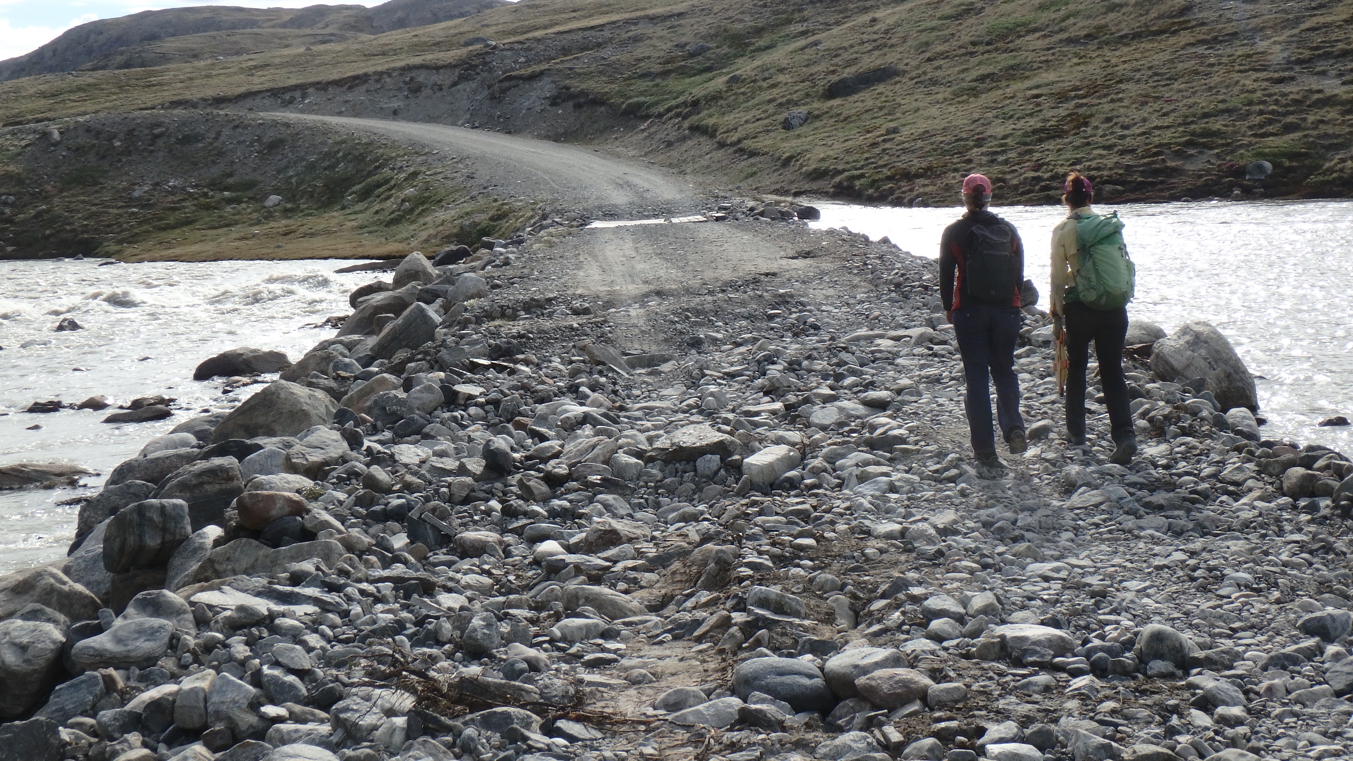 This rubble is what remains of the road that leads to a small bridge after a flood from a new glacial lake outlet recently opened. Kangerlussuaq, Greenland.