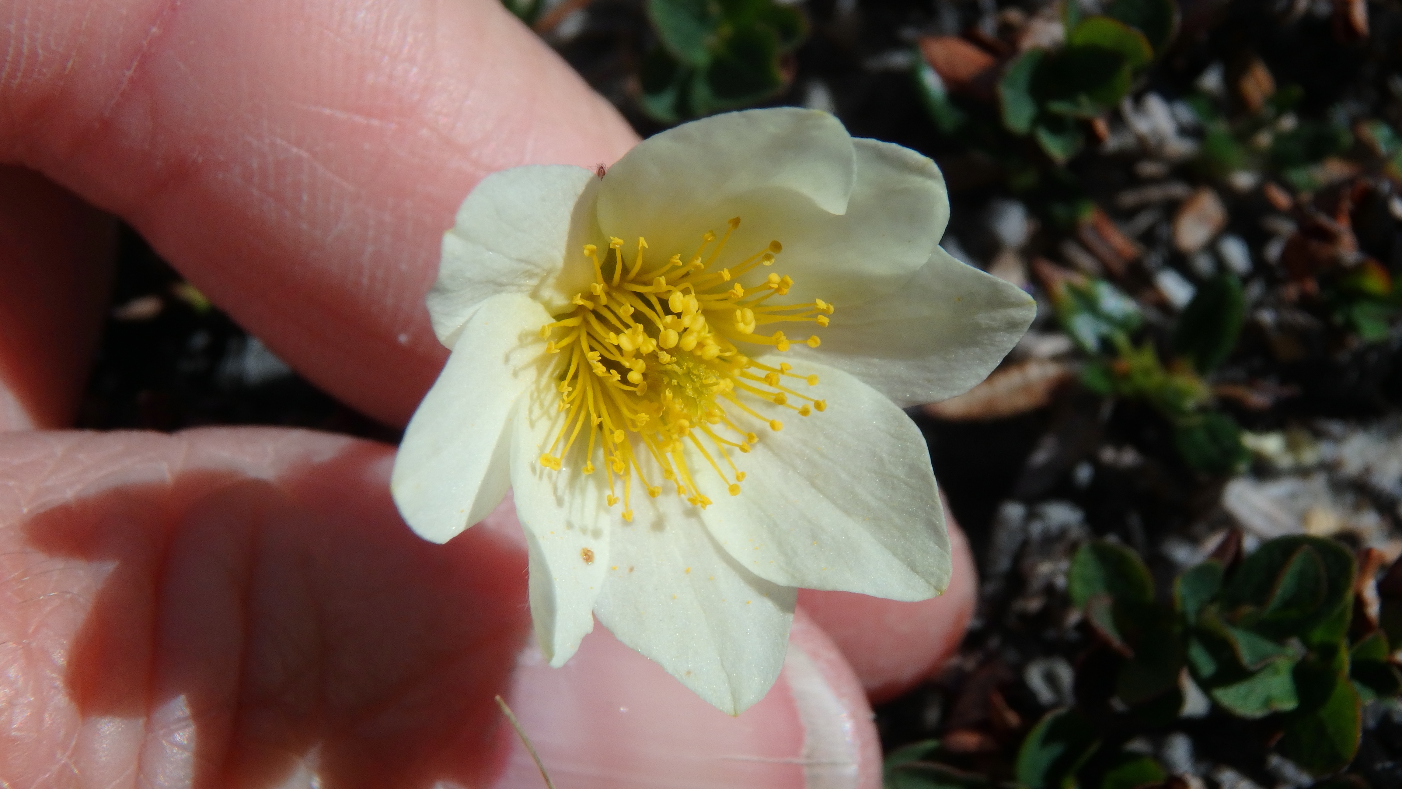 A close-up of a Dryas integrifolia flower. Kangerlussuaq, Greenland.