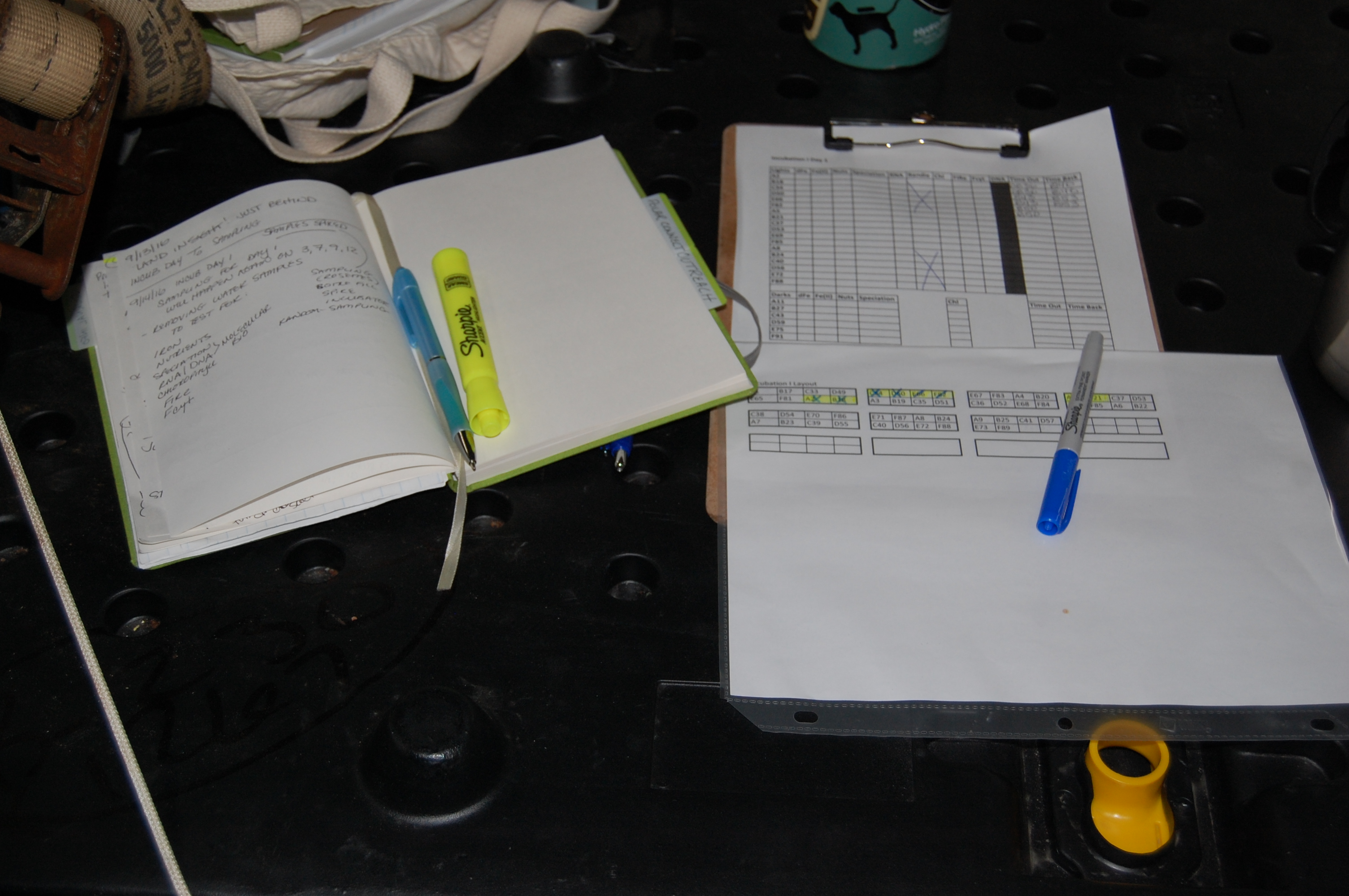 Cara Pekarcik: "Data collection is important during the incubation sampling period. Each lab group collects data. A grid is used to keep track of which bottles are needed and to time how long the bottles are outside of the incubation van. The grid sheet is referred to as the bottle BINGO sheet because the letter and number combination are similar to the game." Aboard the Nathaniel B. Palmer.