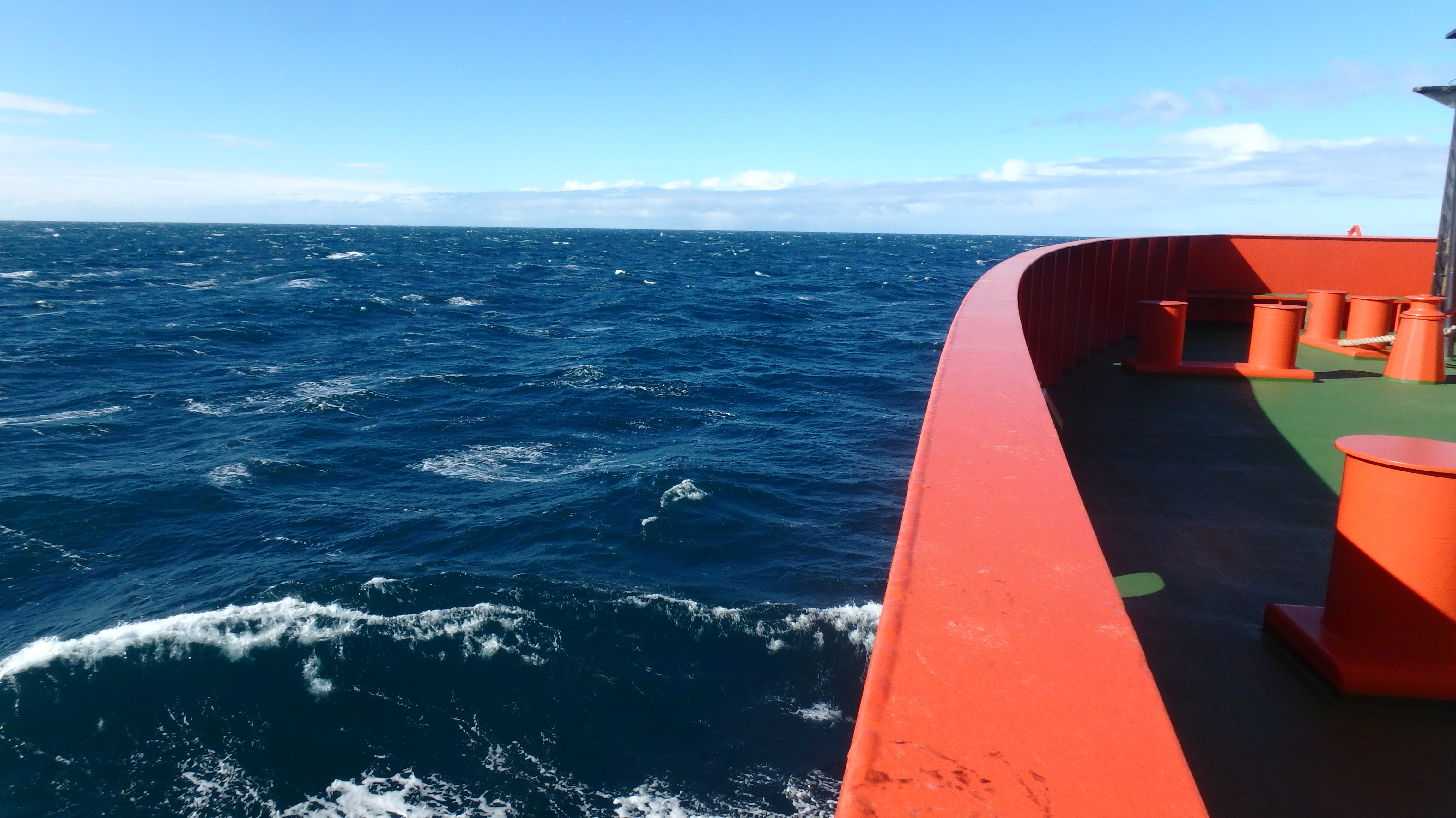 Cara Pekarcik: "Notice that there is no land in sight. Once we round Isla del Estado at the southern tip of South America we are in open water until we reach the Western Antarctic Peninsula." Aboard the Nathaniel B. Palmer.