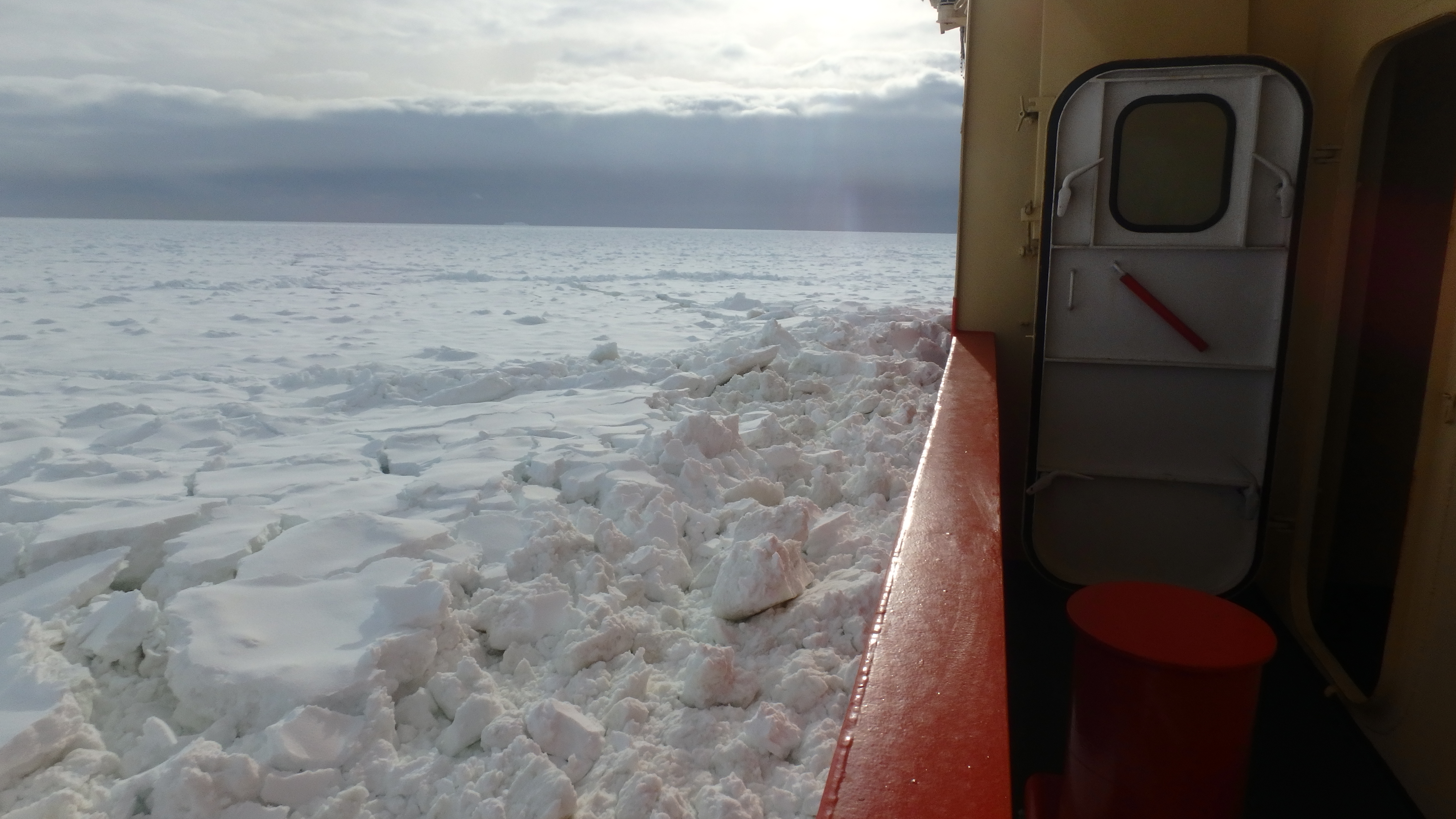 The view from the 01 deck on October 6, 2016. The Palmer spent about six days moving slowly through the pack ice in Bismark Strait. Aboard the Nathaniel B. Palmer.