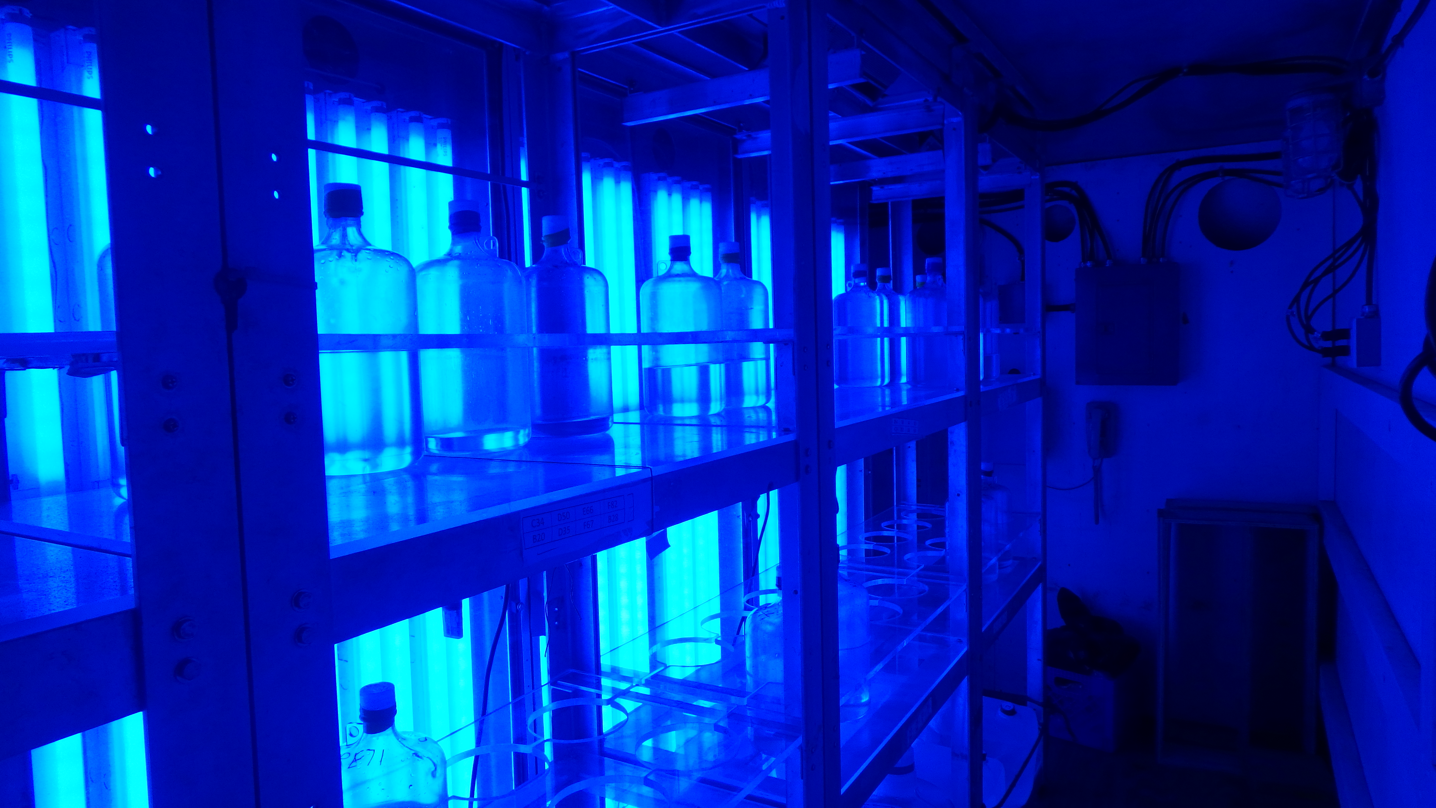 Cara Pekarcik: "At one point, bottles from all three incubation experiments filled the van. With one week left before we arrive in Punta Arenas, Chile, the number of bottles in the van is less each day." Aboard the Nathaniel B. Palmer.