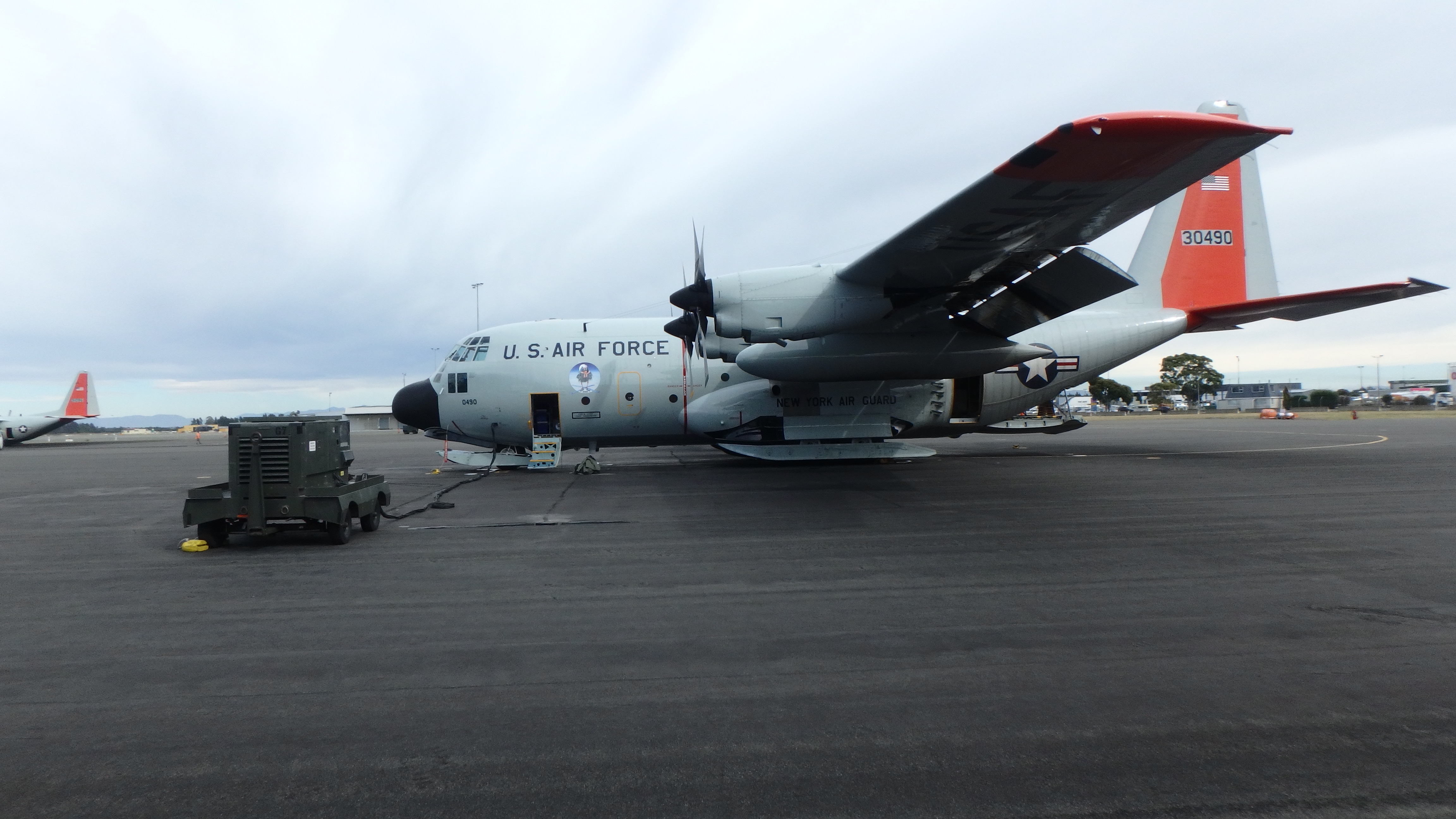 The CL-130 that will take the team to Antarctica sits on the tarmac at the United States Antarctic Program (USAP) terminal in Christchurch, New Zealand.