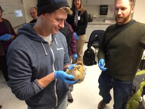 Eric Thuma holds a hibernating Arctic ground squirrel at the Museum of the North in Fairbanks, Alaska.