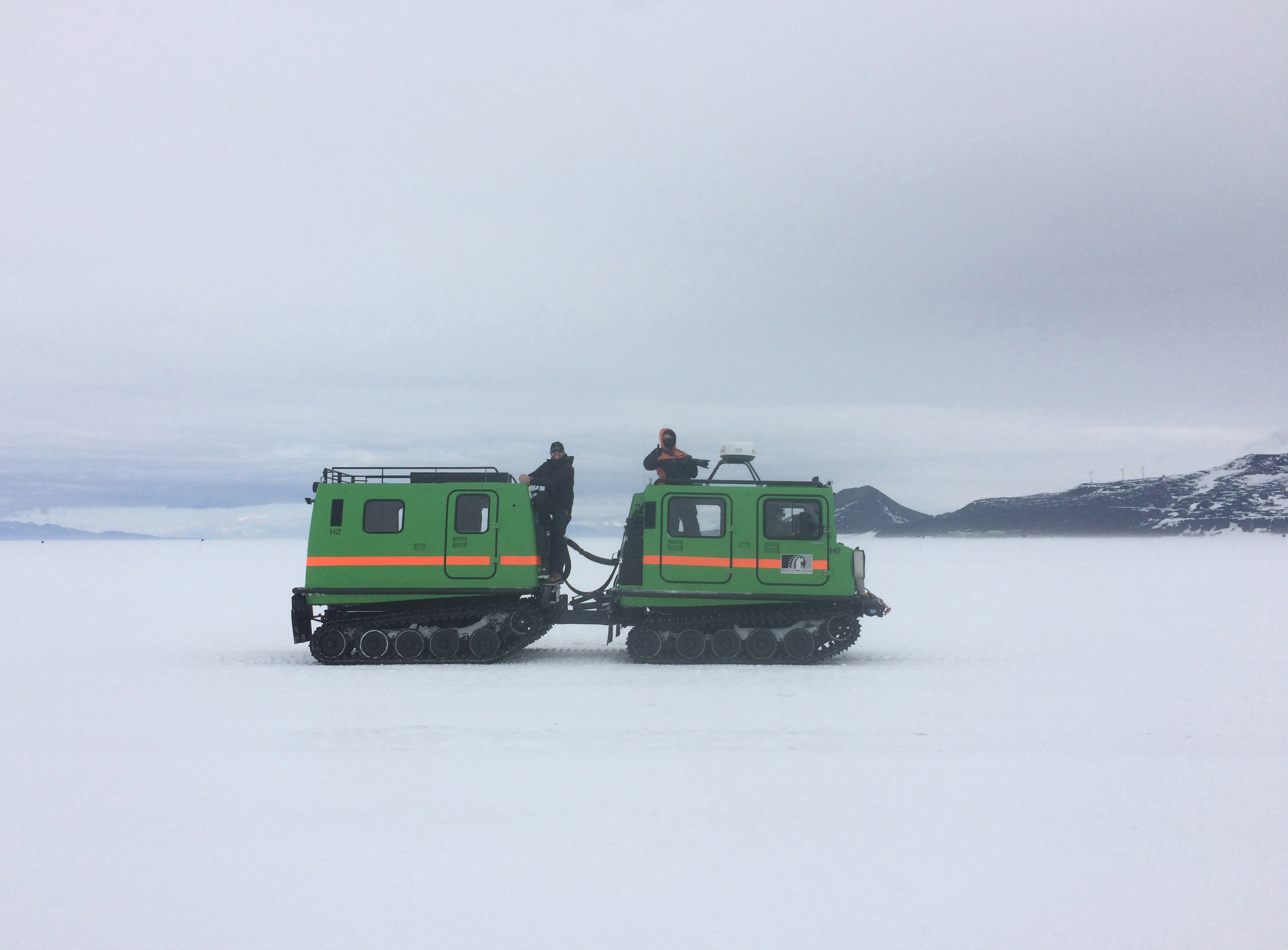 Josh Heward: "This Hagglund continually drove the race course offering support to anyone in the McMurdo Marathon that needed it. There was also a toilet bucket in the back." Ross Ice Shelf near McMurdo Station, Antarctica.