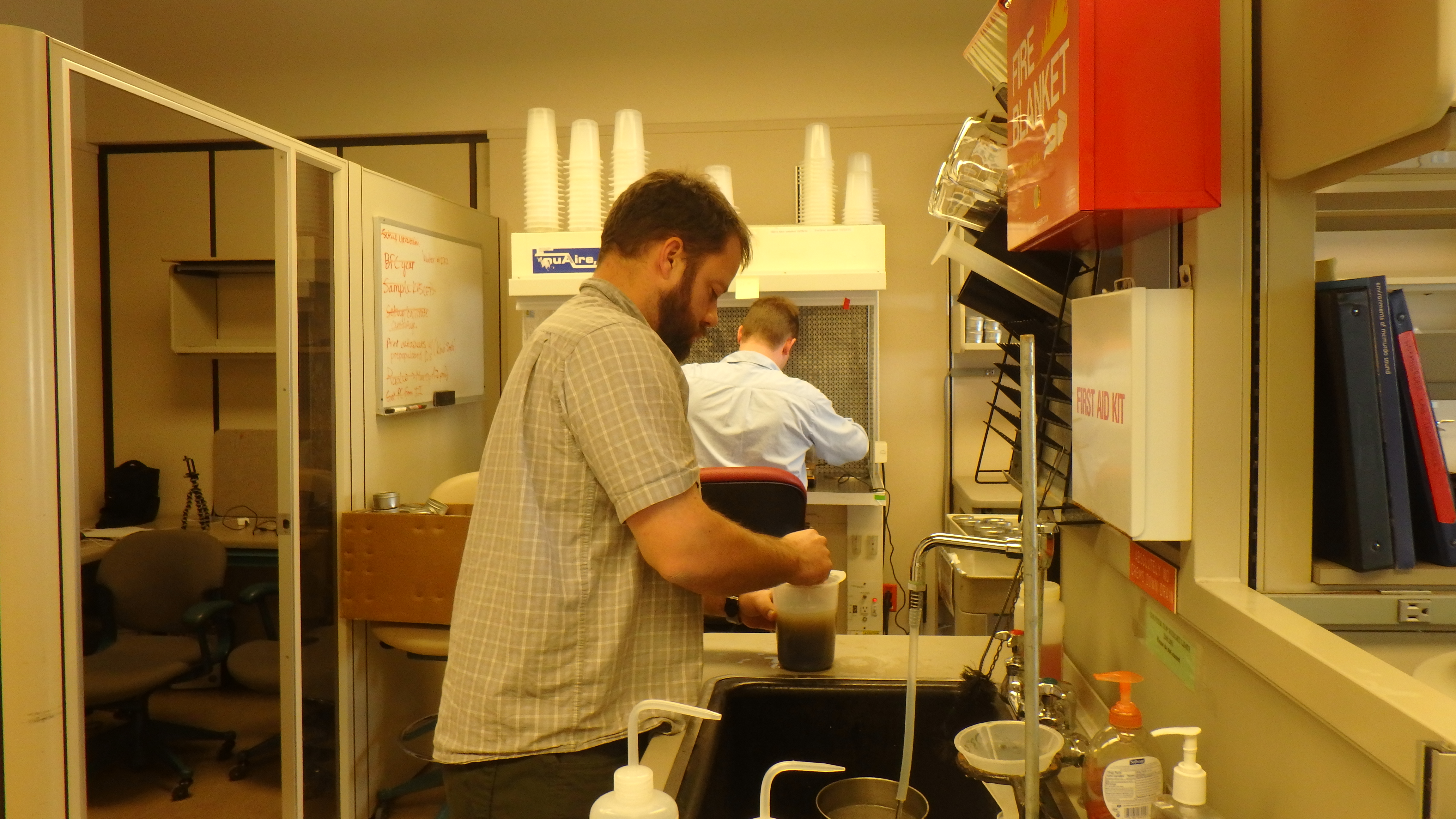 Josh Heward prepares a soil suspension. At the Crary Lab, McMurdo Station, Antarctica.