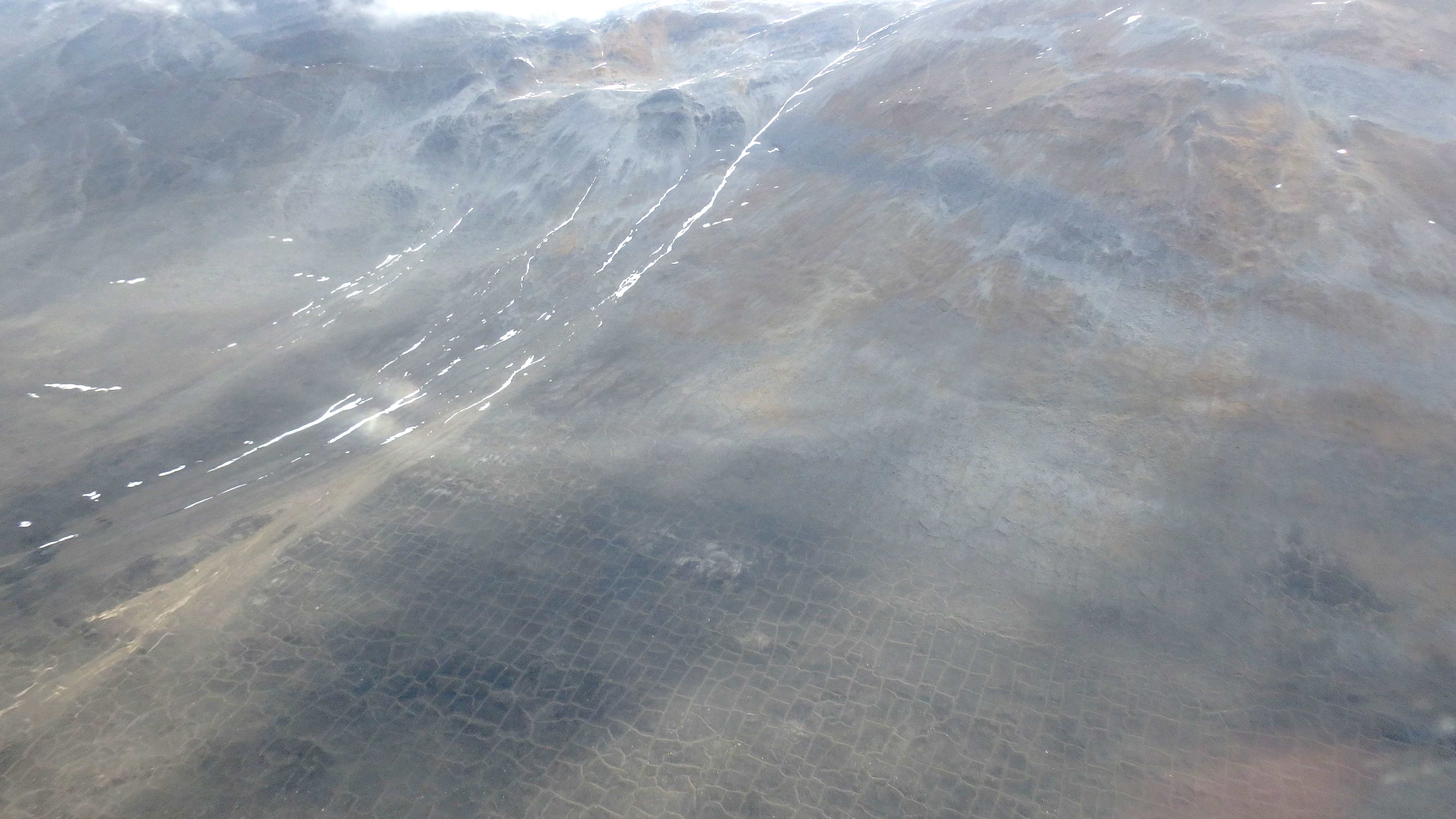 Patterned ground in Miers Valley. The polygons form when sand fills cracks in the ground that result from cycles of expansion and contraction with changing temperatures. Miers Valley, Antarctica.