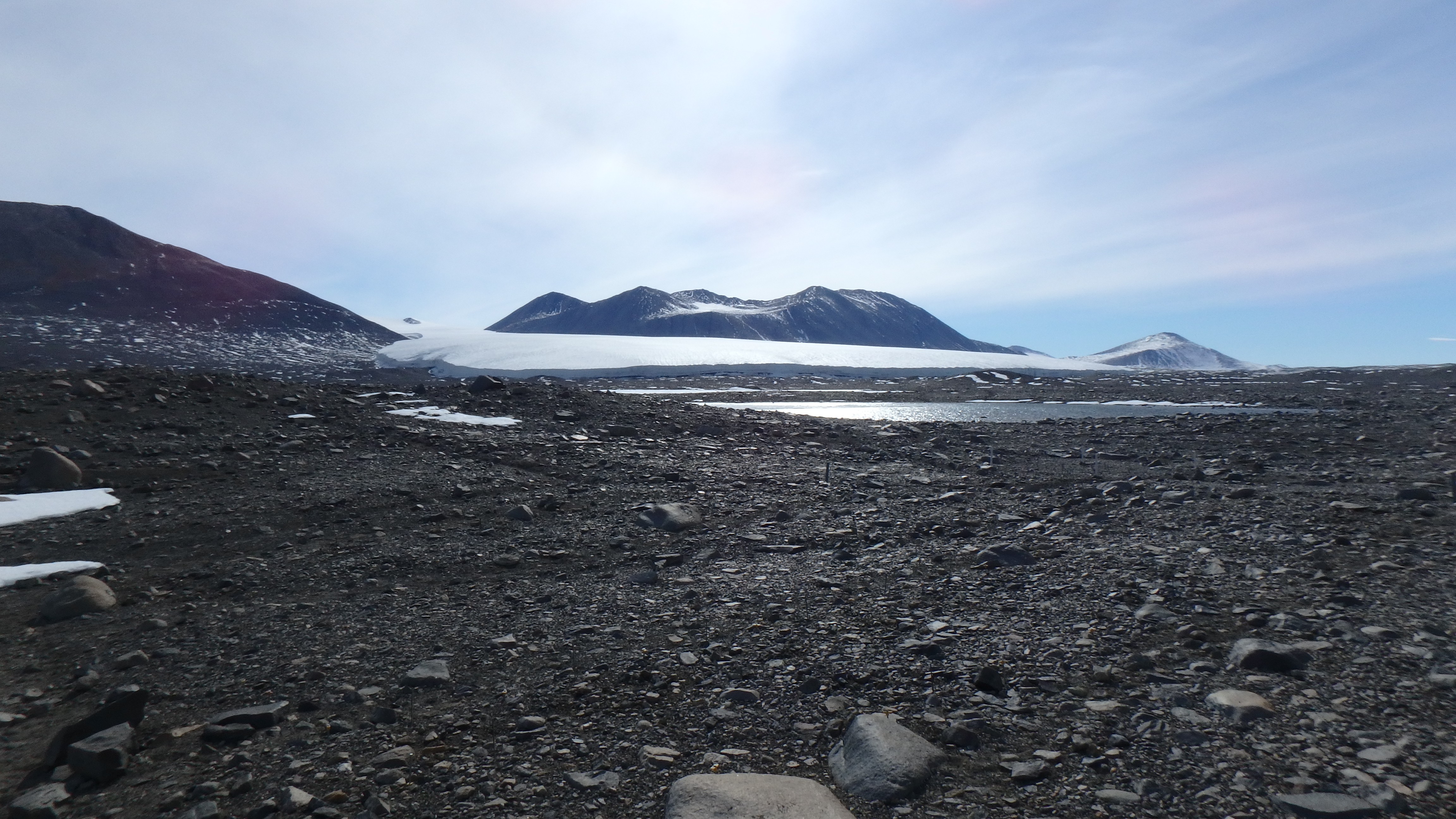 The Commonwealth Glacier and Lake Fryxell as viewed from the F6 stoichiometry plots in Taylor Valley, Antarctica.