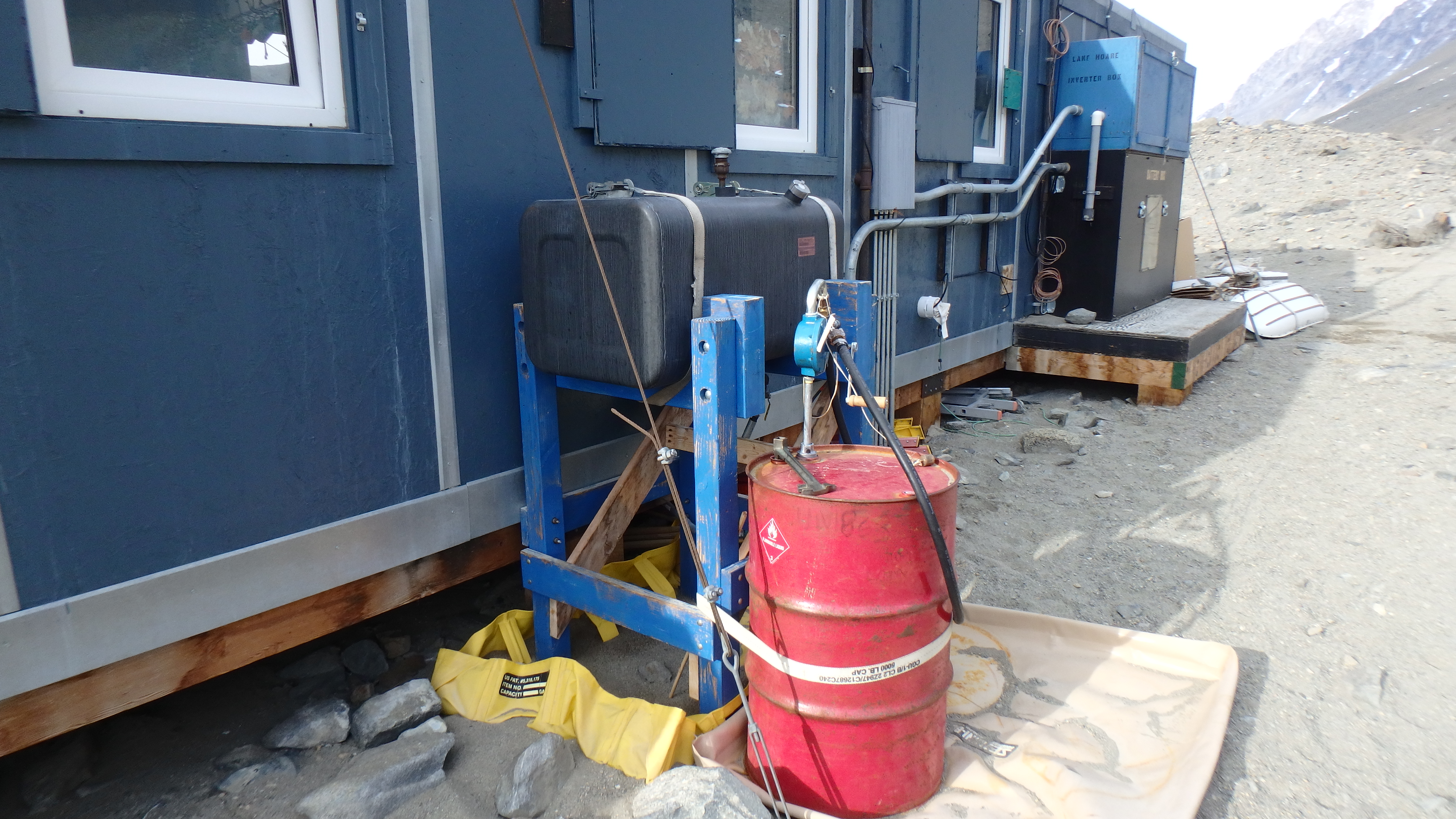 Diesel fuel is used for the heater in the Lake Hoare hut. Lake Hoare Camp, Taylor Valley, Antarctica.
