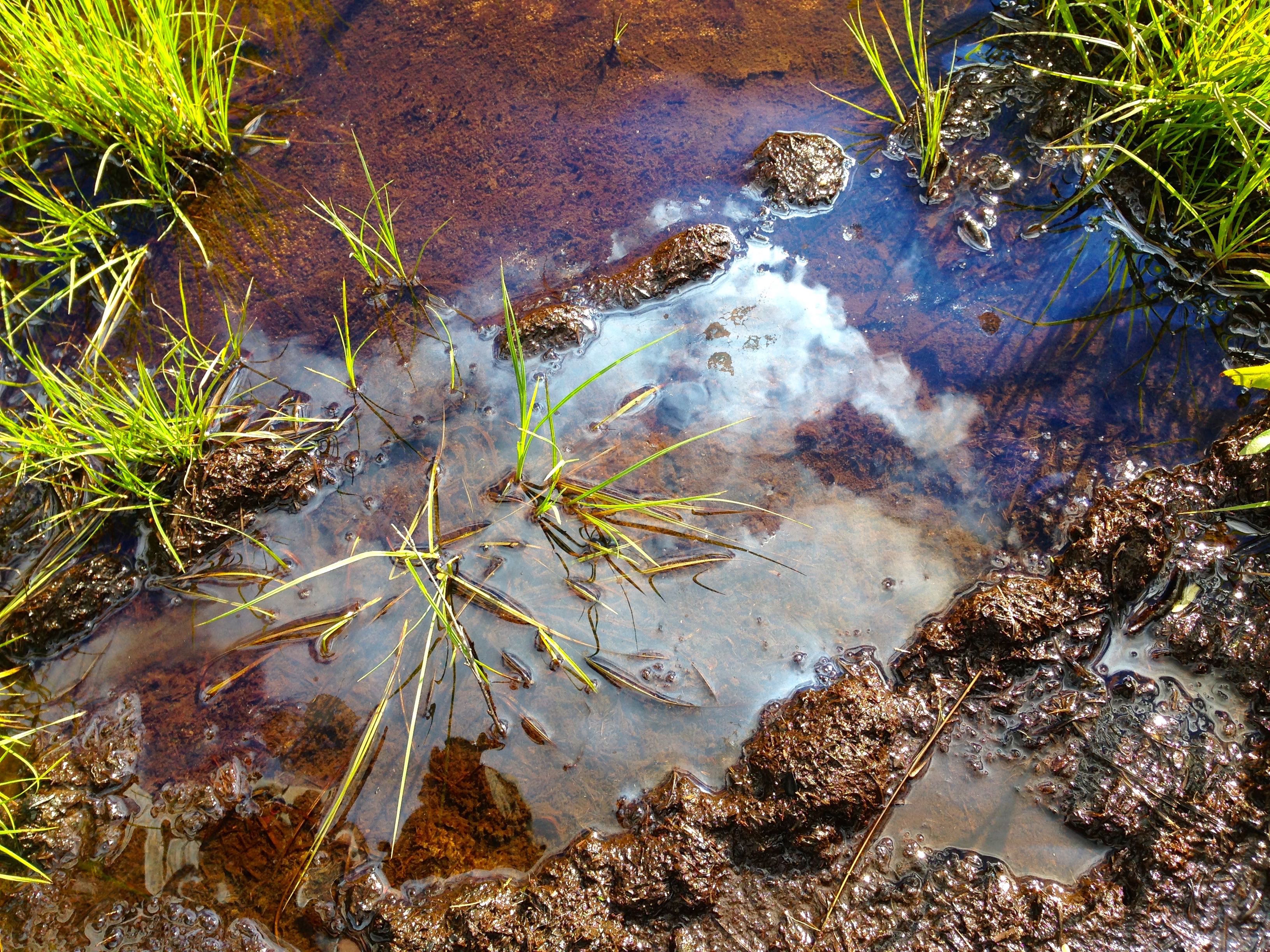 Bog oil, a natural occurance, at the CiPEHR site, near Healy, Alaska.