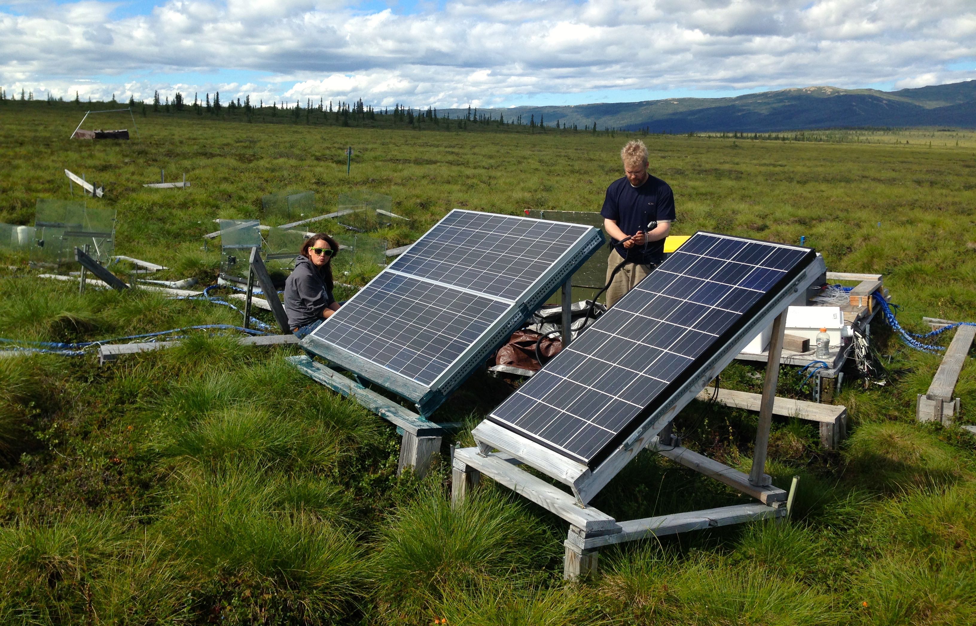 Solar panels generate the energy needed to power the electronics at the CiPEHR site, near Healy, Alaska.